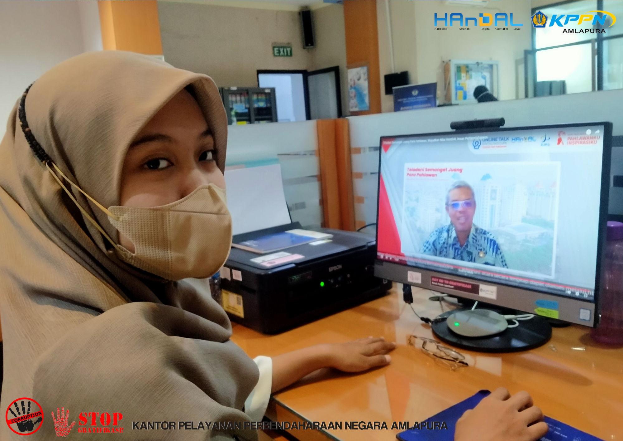 Dalam rangka memaknai Hari Pahlawan ke 76, pegawai KPPN Amlapura mengikuti kegiatan Bintalnas DJPb yang bertemakan "Teladani Semangat Juang Para Pahlawan, Wujudkan Nilai HAnDAL Insan Perbendaharaan", dengan narasumber Staf Ahli Menteri Perhubungan Bid. Logistik, Multimoda dan Keselamatan dan Direktur Pelaksanaan Anggaran, Ditjen Perbendaharaan.