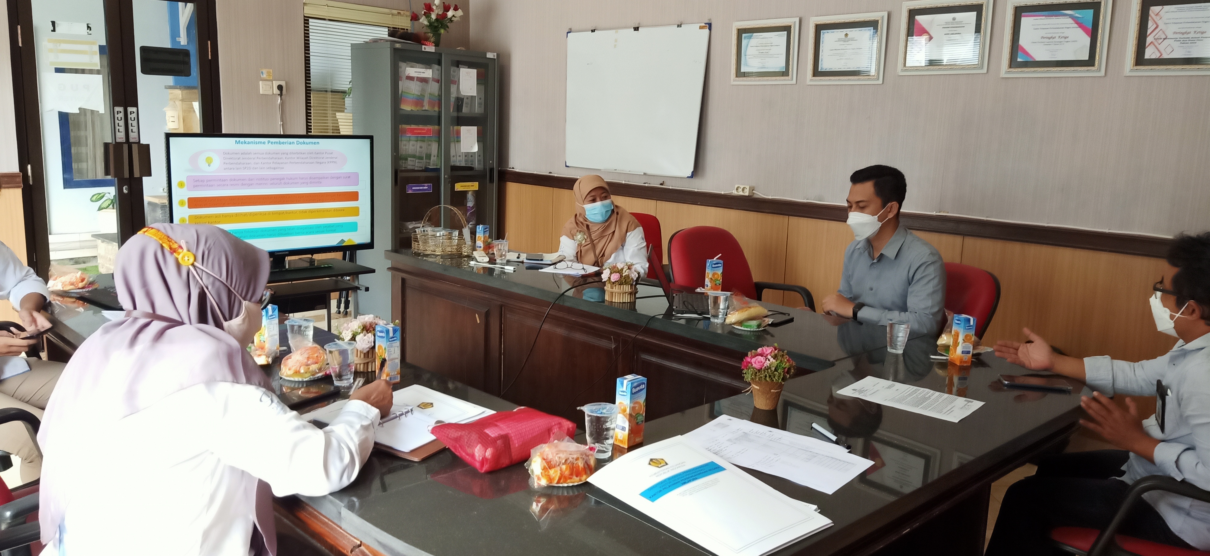 Sehubungan dengan kegiatan Monitoring Penanganan Perkara Hukum Internal Ditjen Perbendaharaan Tahun 2021, hari Kamis tanggal 2 Desember 2021 dilaksanakan diskusi mengenai penanganan perkara hukum dengan Bapak Wahyu Widhianto dengan Marfian Rizky Ersanta dari Subdit Pembinaan Proses Bisnis dan Hukum, Direktorat SP, Ditjen Perbendaharaan. Pejabat/pegawai KPPN Amlapura mendapatkan pencerahan mengenai hukum keuangan negara secara umum dan hal-hal yang perlu mendapat perhatian terkait pemanggilan sebagai saksi/ahli dan penanganan masalah hukum bagi pejabat/pegawai di lingkungan Ditjen Perbendaharan. Salah satu pesan dari Tim Dit SP apabila