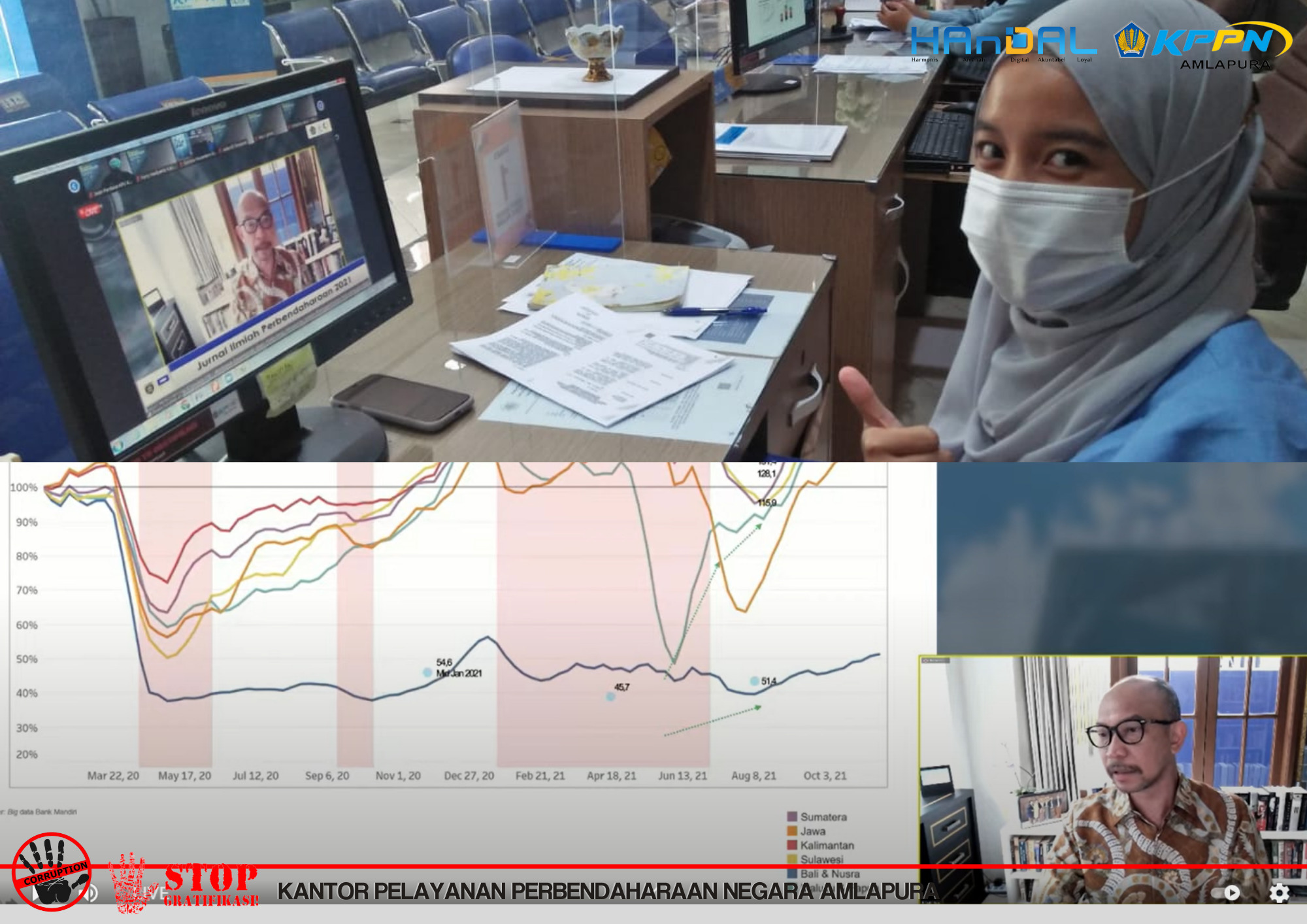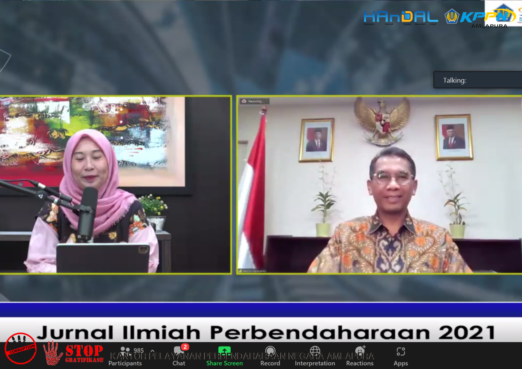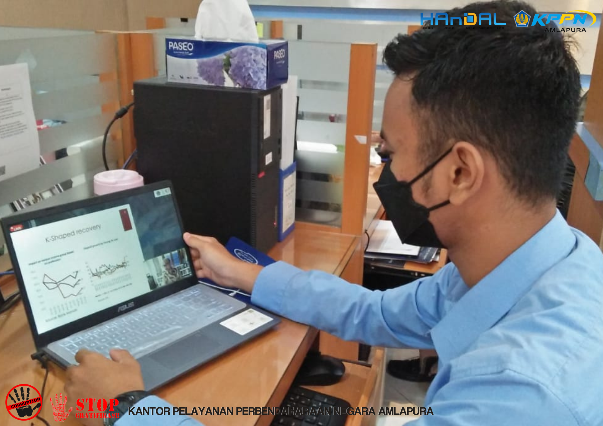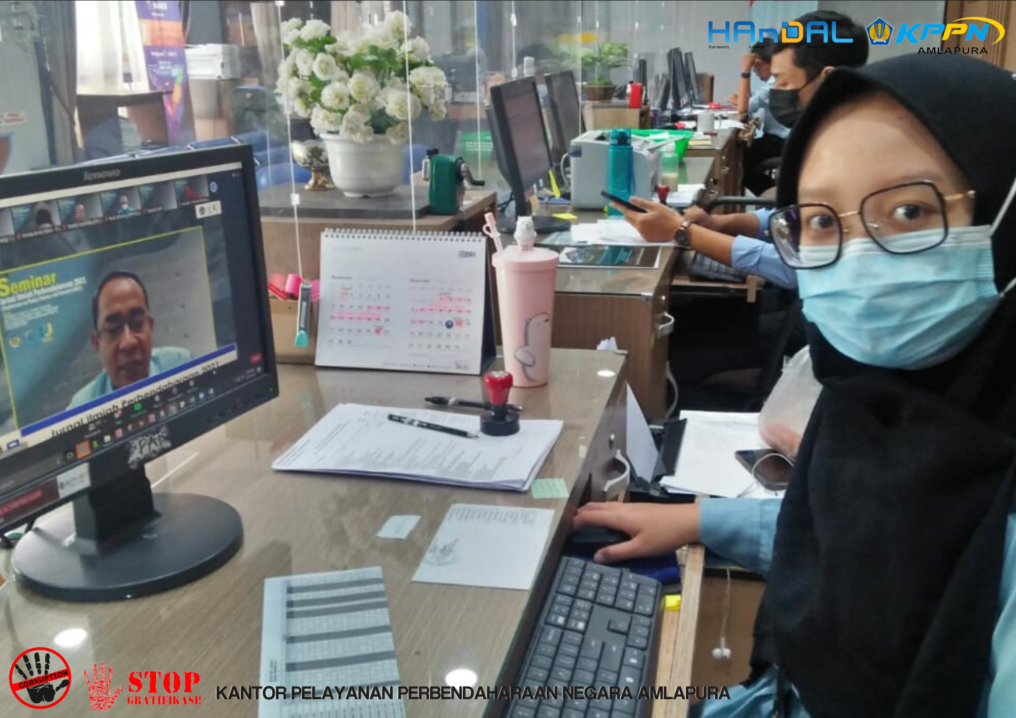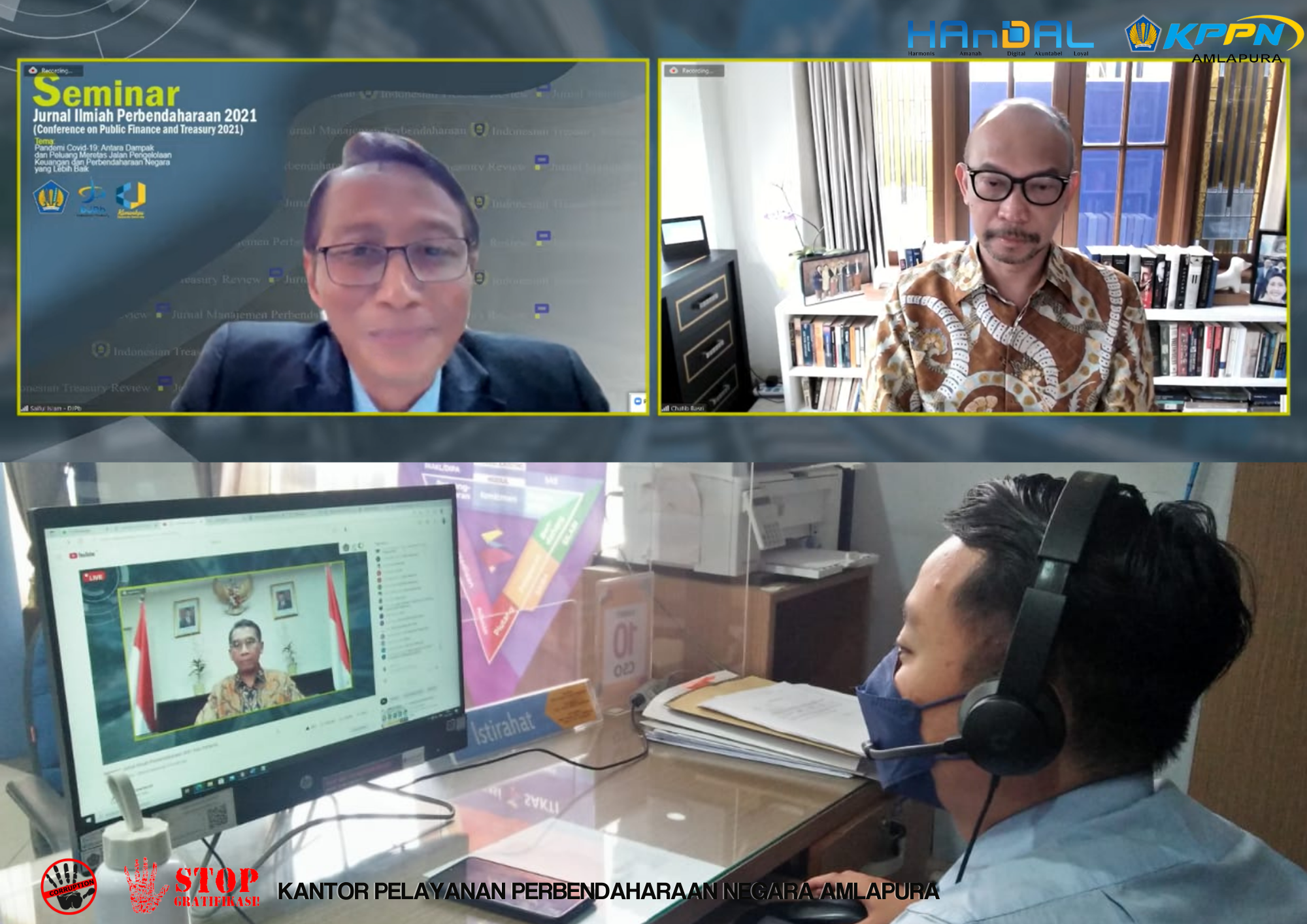 Hari ini pegawai KPPN Amlapura mengikuti rangkaian kegiatan Seminar Jurnal Ilmiah Perbendaharaan (Conference on Public Finance and Treasury) Tahun 2021 yang diselenggarakan oleh Direktorat Jenderal Perbendaharaan & Badan Pendidikan dan Pelatihan Keuangan, Kementerian Keuangan. Seminar yang mengangkat tema “Pandemi Covid-19 : Antara Dampak dan Peluang Meretas Jalan Pengelolaan Keuangan dan Perbendaharaan Negara yang Lebih Baik” ini akan dilaksanakan dalam dua hari (tanggal 15 dan 16 Desember 2021).