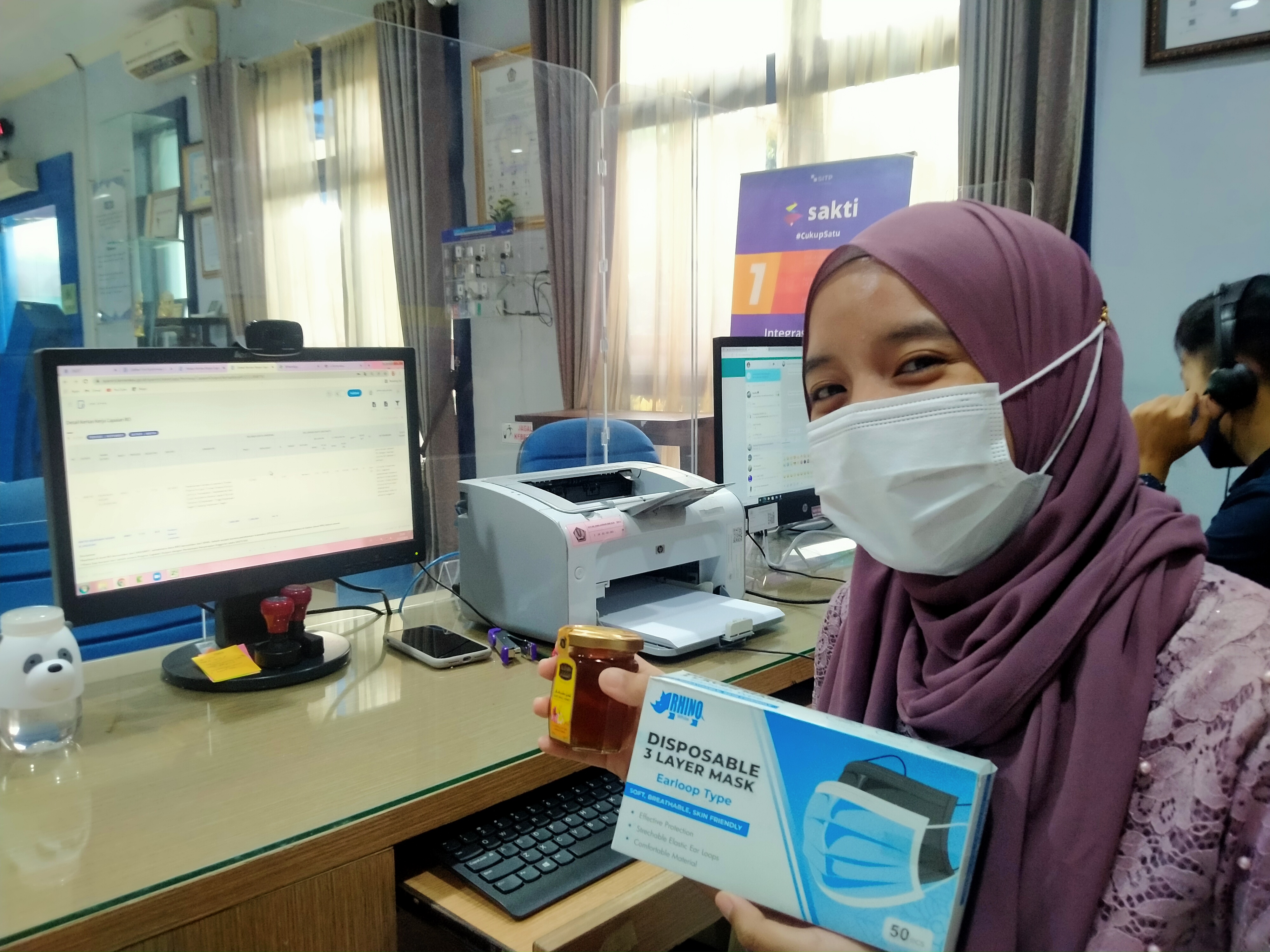 Sehubungan dengan ancaman penyebaran COVID-19, khususnya varian baru (Omicron), menjelang periode Hari Raya Natal 2021 dan Tahun Baru 2022 (Nataru) dibagikan masker dan madu kepada para pegawai (ASN dan PPNPN) sebagai upaya pencegahan penyebaran COVID-19 dan peningkatan imunitas pegawai. Seluruh insan perbendaharaan di KPPN Amlapura berkomitmen untuk tetap terapkan protokol kesehatan dan tertib dalam membatasi berpergian ke luar daerah serta cuti selama periode Nataru. Semoga ikhtiar kita memberikan kontribusi yang positif dalam mencegah penyebaran dan menghadapi pandemi ini.