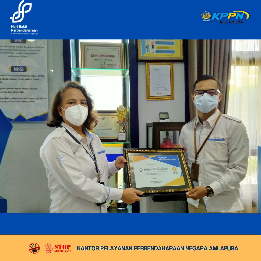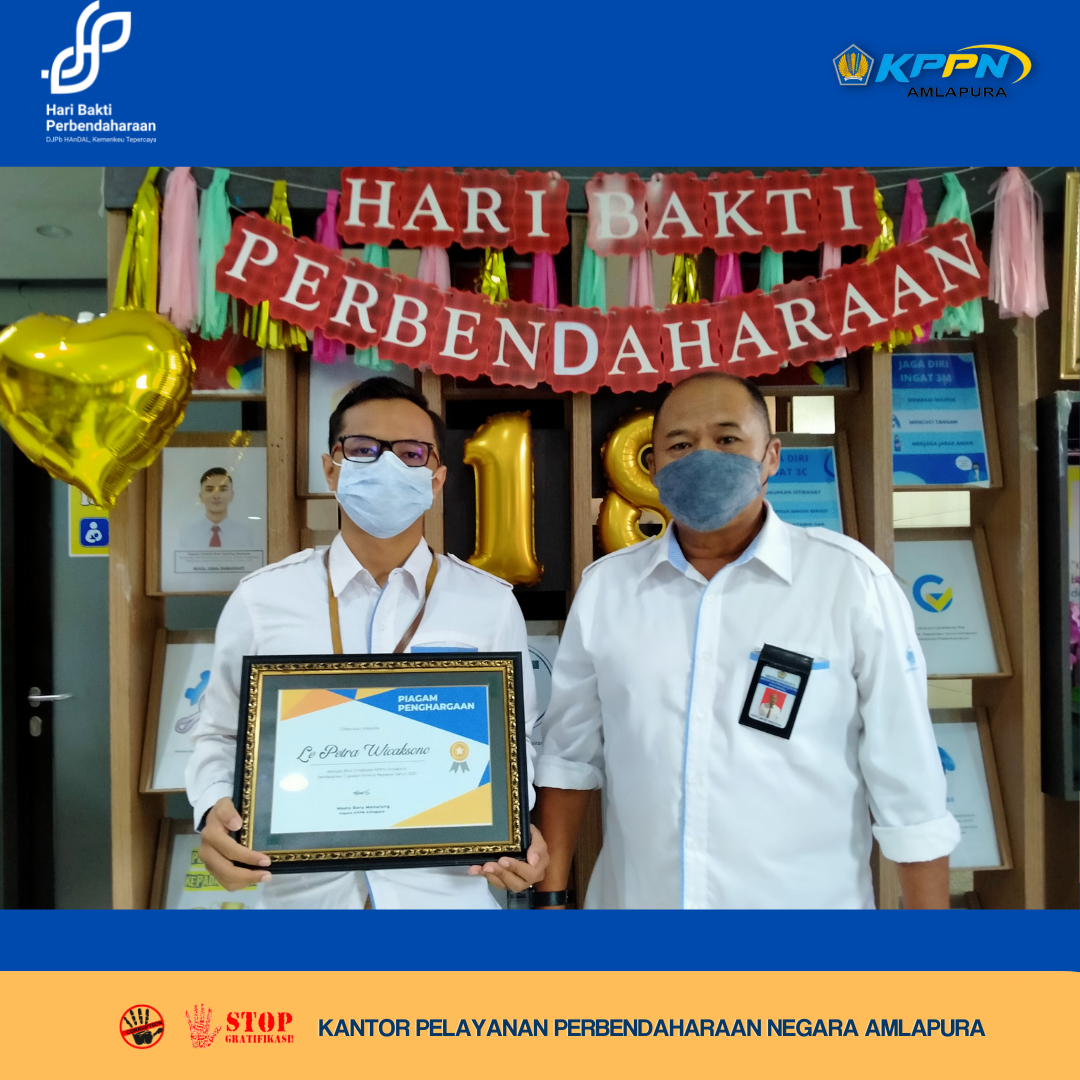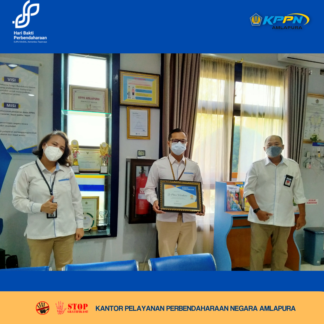 Pada Morning Briefing kali ini, KPPN Amlapura memberikan apresiasi kepada pegawai yang meraih nilai Capaian Kinerja Pegawai (CKP) Tertinggi untuk Tahun 2021 atas nama Le Petra Wicaksono, pelaksana di Seksi Veraki. Melalui pemberian apresiasi ini diharapkan mampu memberikan motivasi kepada para pegawai untuk memberikan kinerja yang lebih baik lagi.