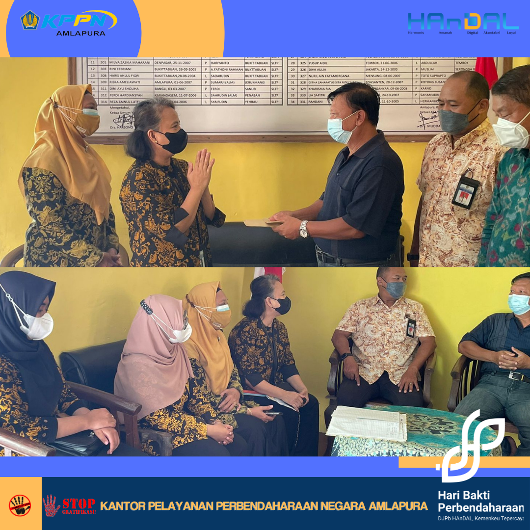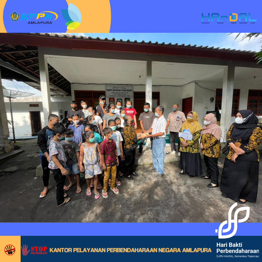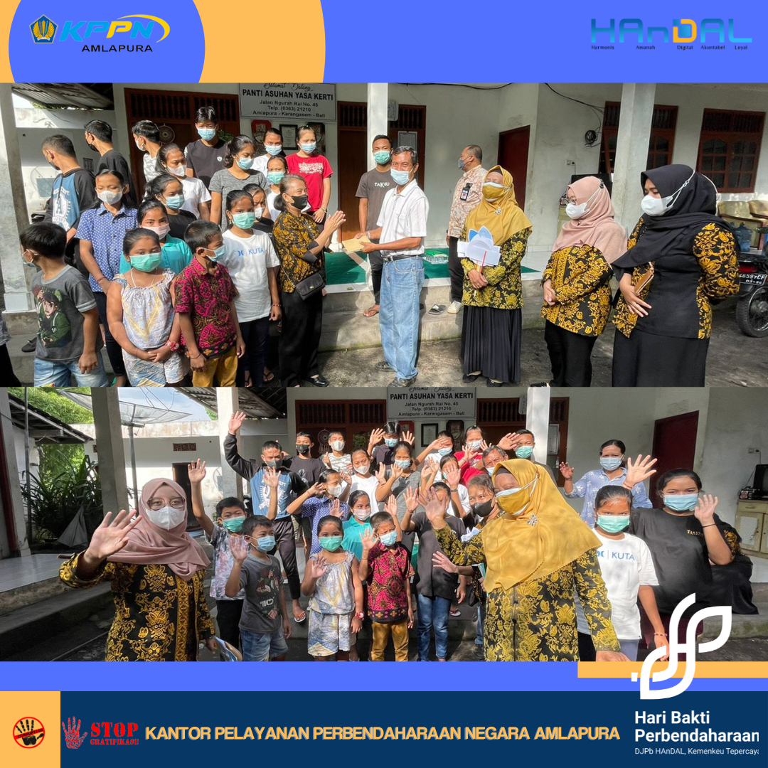 Dalam rangka pelaksanaan rangkaian hari bakti perbendaharaan ke-18, pada hari ini Jumat, 4 Februari 2022, Perwakilan pegawai KPPN Amlapura memberikan santunan kepada Panti Asuhan Yassika dan Panti Asuhan Yasa Kerthi yang terletak di Amlapura, Kab. Karangasem, Bali.