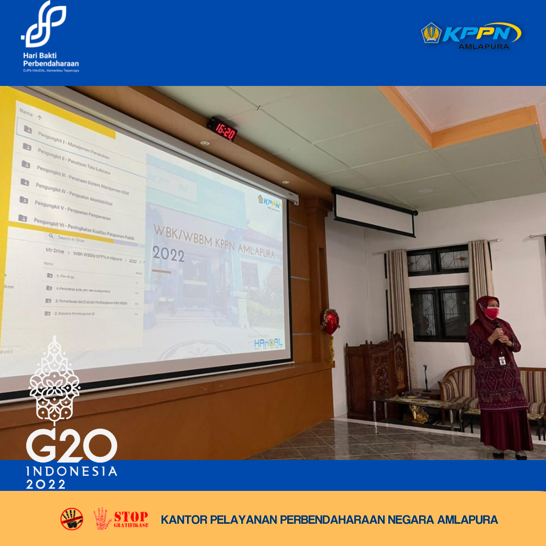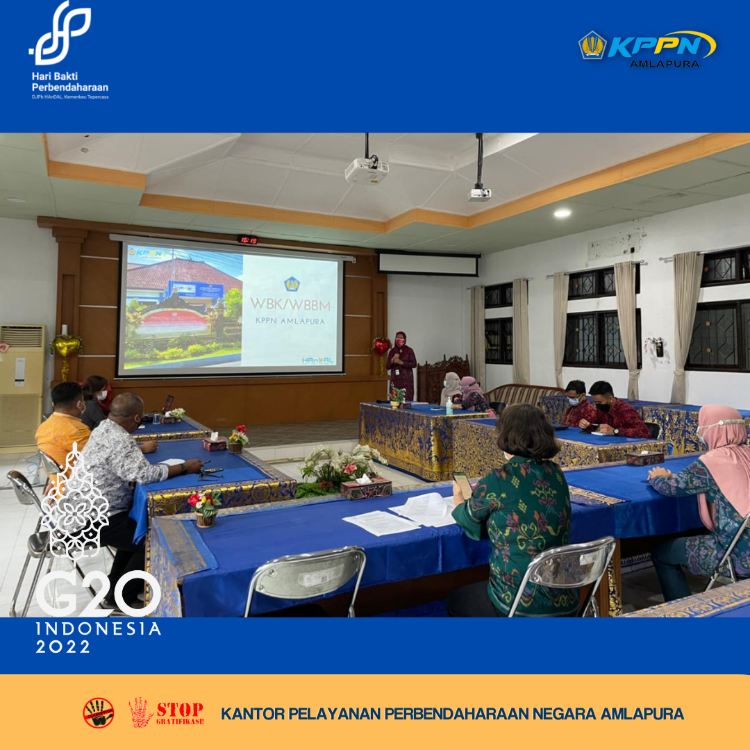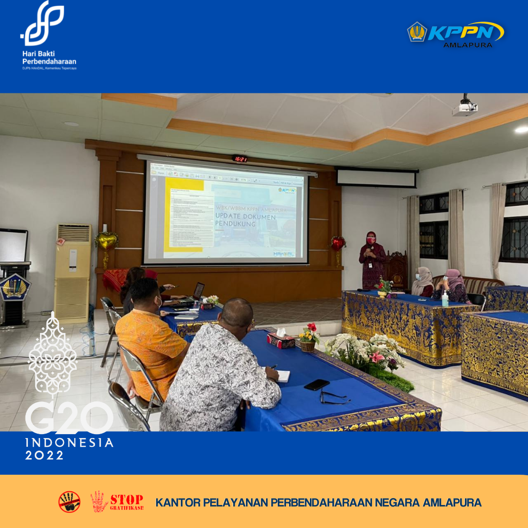 Pada hari selasa tanggal 22 Februari 2022, dalam rangka peningkatan pemahaman pegawai terkait pelaksanaan WBK/WBBM dan sejalan dengan langkah-langkah Peningkatan Tugas Kepatuhan Internal, KPPN Amlapura melaksanakan kegiatan Sosialisasi Penatausahaan Dokumen WBBM dan Internalisasi Gratifikasi, Pengaduan, serta Netralitas Pegawai.