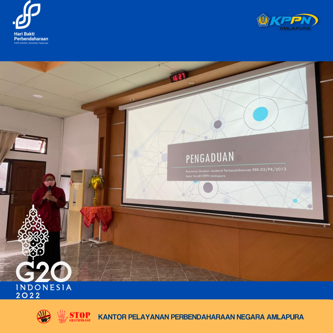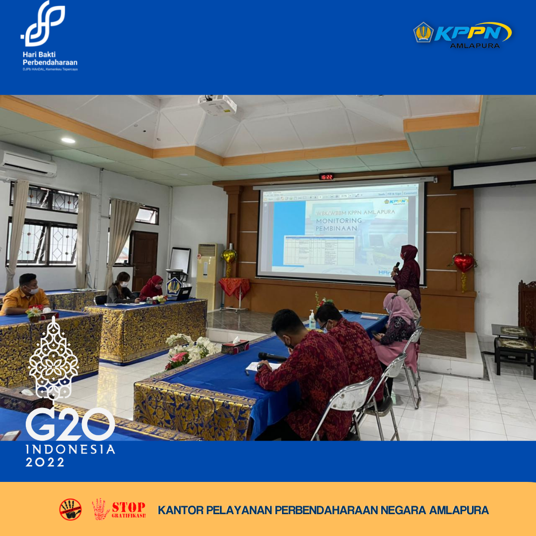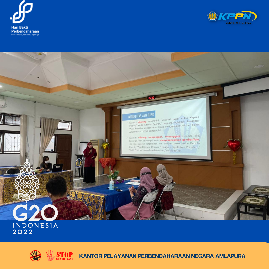 Pada hari selasa tanggal 22 Februari 2022, dalam rangka peningkatan pemahaman pegawai terkait pelaksanaan WBK/WBBM dan sejalan dengan langkah-langkah Peningkatan Tugas Kepatuhan Internal, KPPN Amlapura melaksanakan kegiatan Sosialisasi Penatausahaan Dokumen WBBM dan Internalisasi Gratifikasi, Pengaduan, serta Netralitas Pegawai.