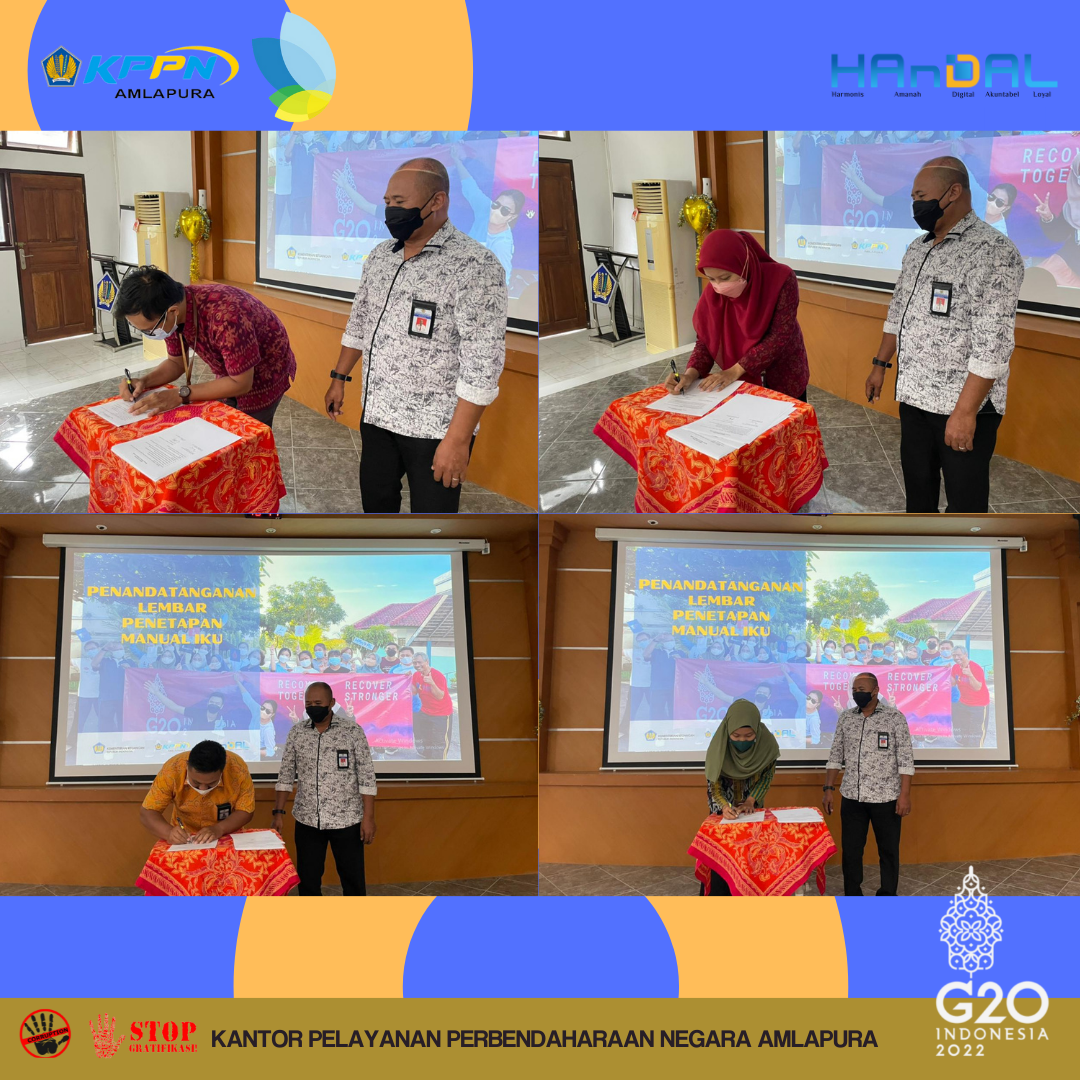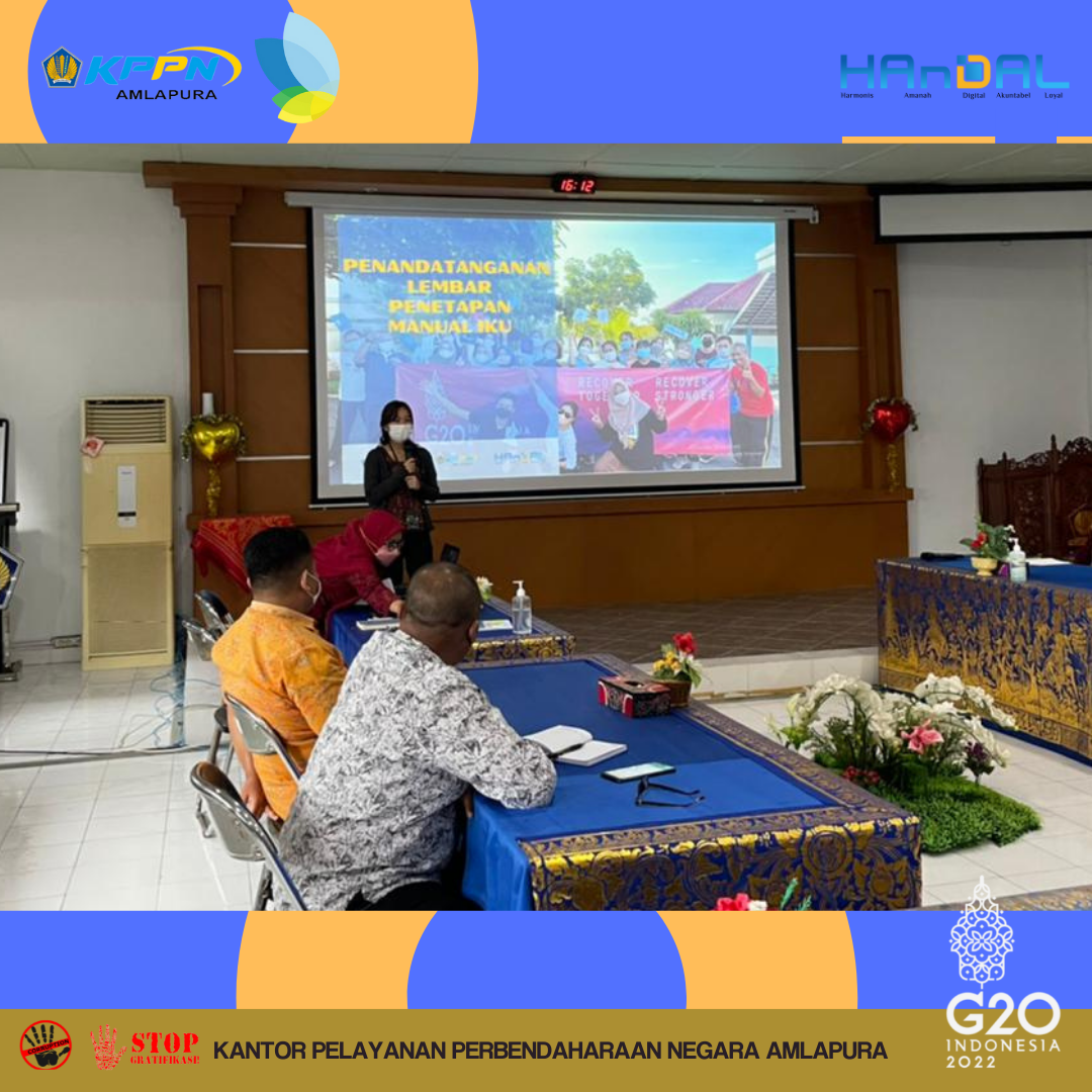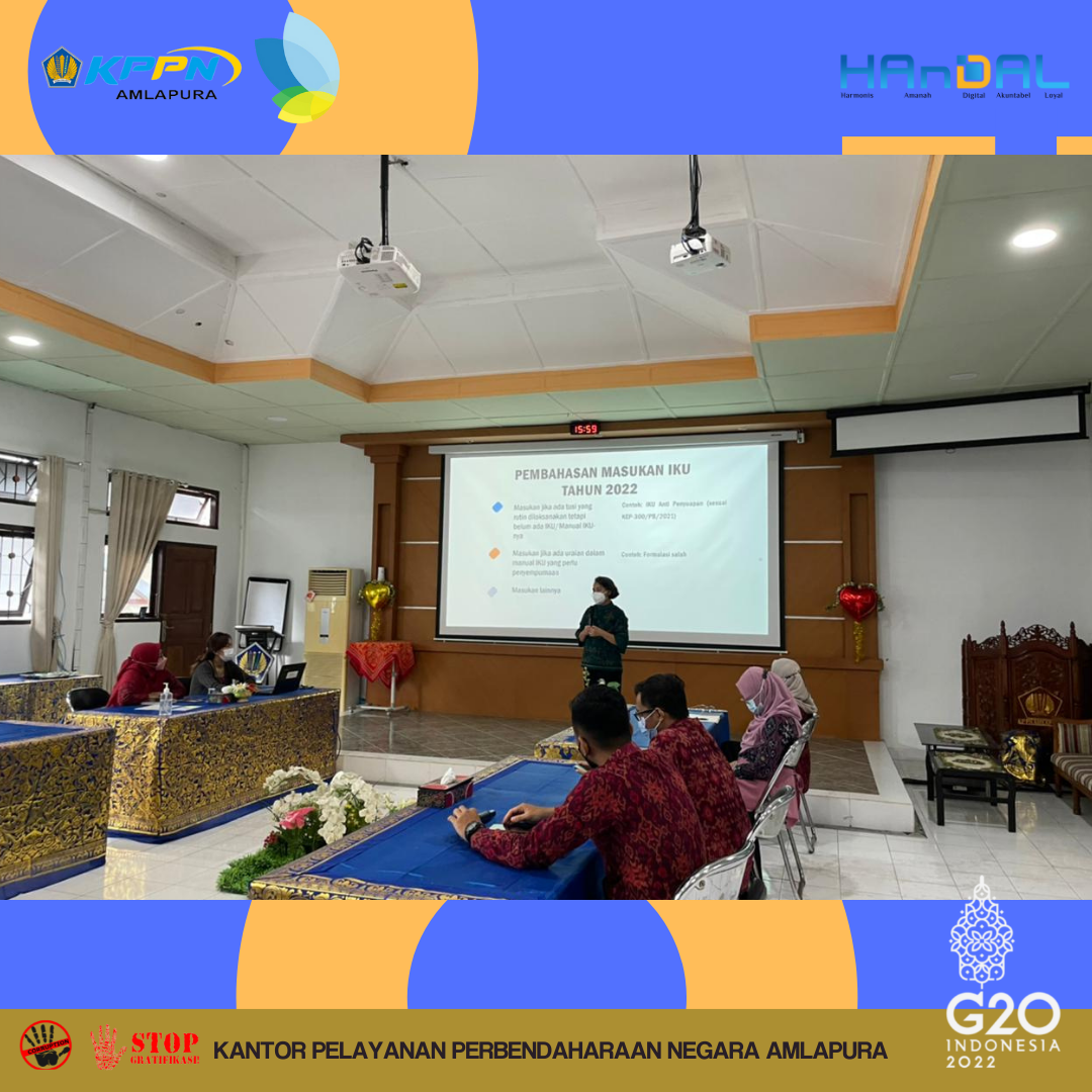 Sehubungan dengan penetapan Manual IKU Tahun 2022, KPPN Amlapura telah melakukan sosialisasi Manual IKU KPPN pada Selasa, 22/02/2022. Kepala Kantor bersama dengan Pengelola Kinerja menyampaikan tentang Manual IKU Kemenkeu Three dan keselarasannya dengan IKU Kemenkeu Four dan Five.