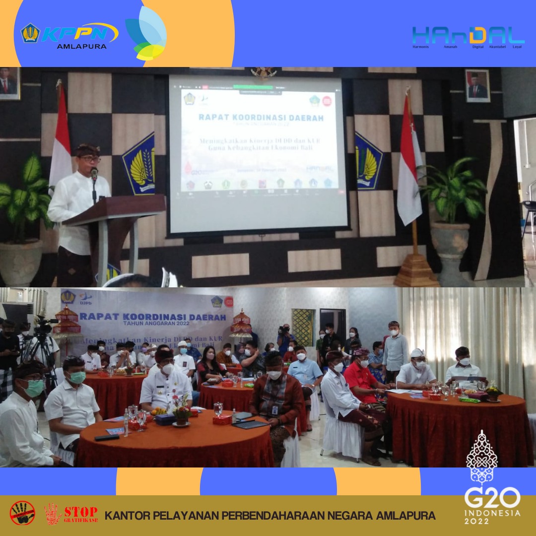 Hari Kamis tanggal 24 Februari 2022, Kepala KPPN Amlapura dan tim menghadiri Rapat Koordinasi Pemerintah Daerah terkait Penyaluran DAK Fisik, Dana Desa dan KUR Tahun 2022 yang diselenggarakan oleh Kanwil Ditjen Perbendaharaan Provinsi Bali.