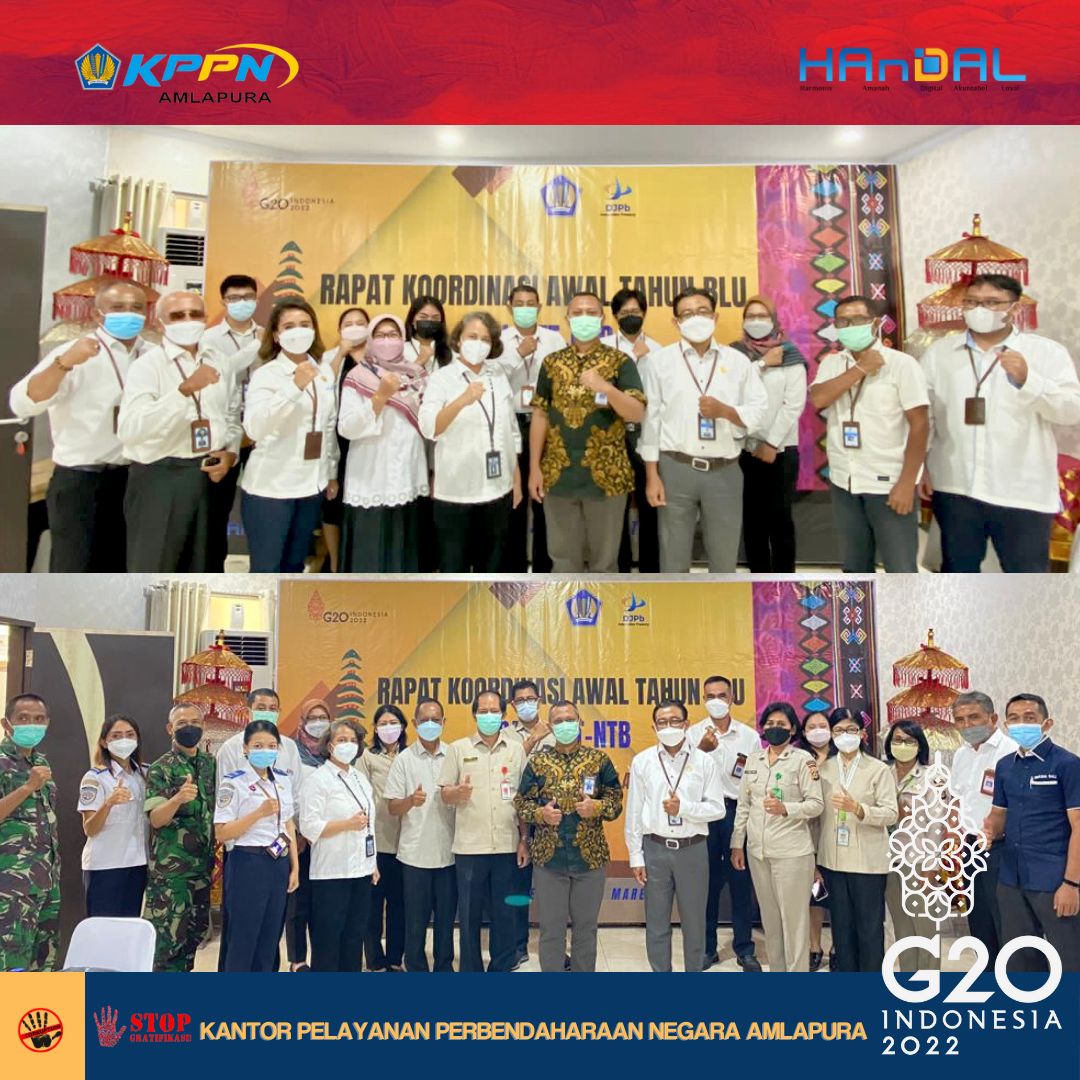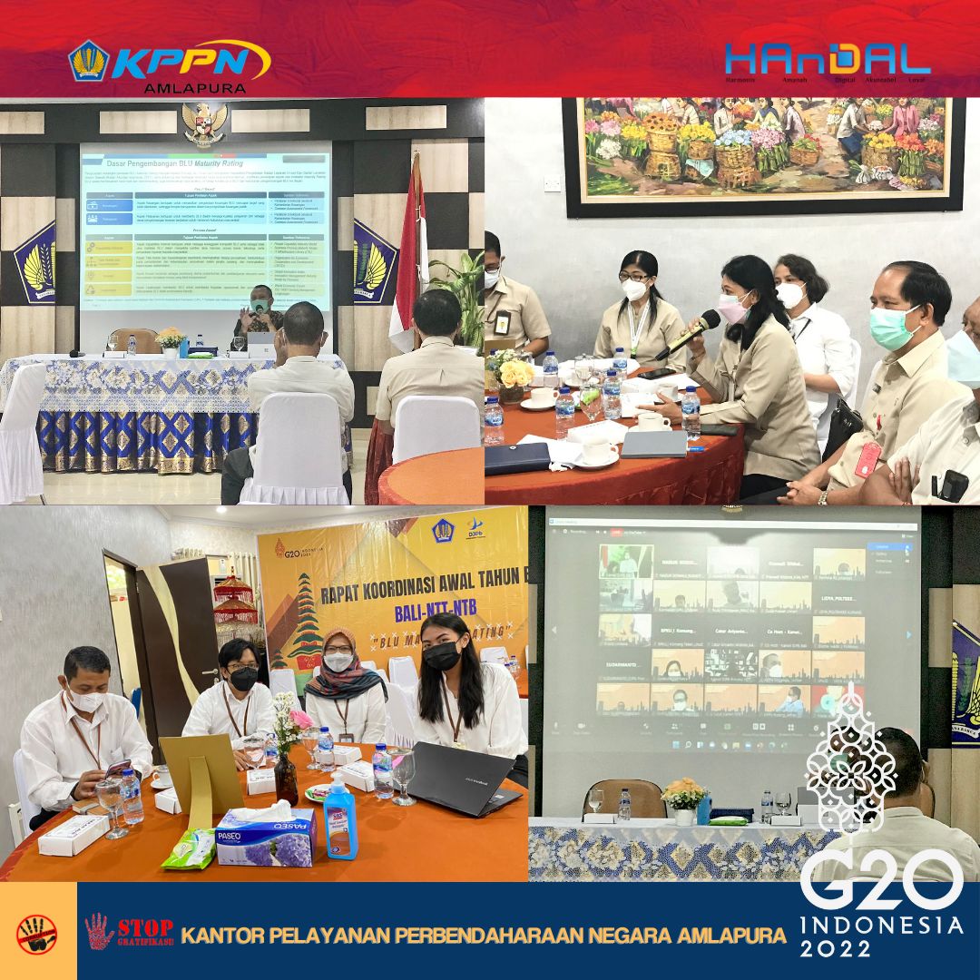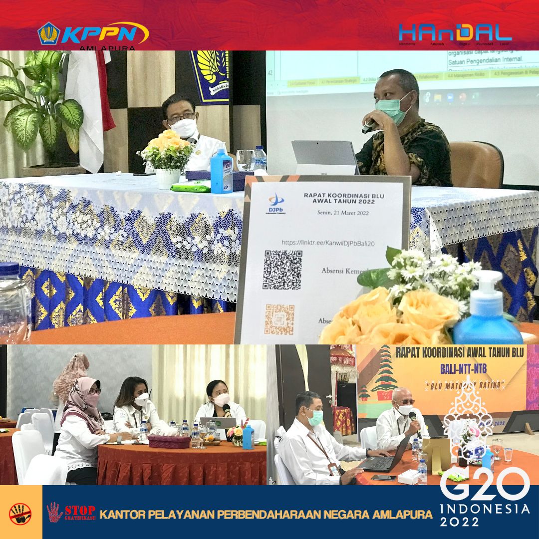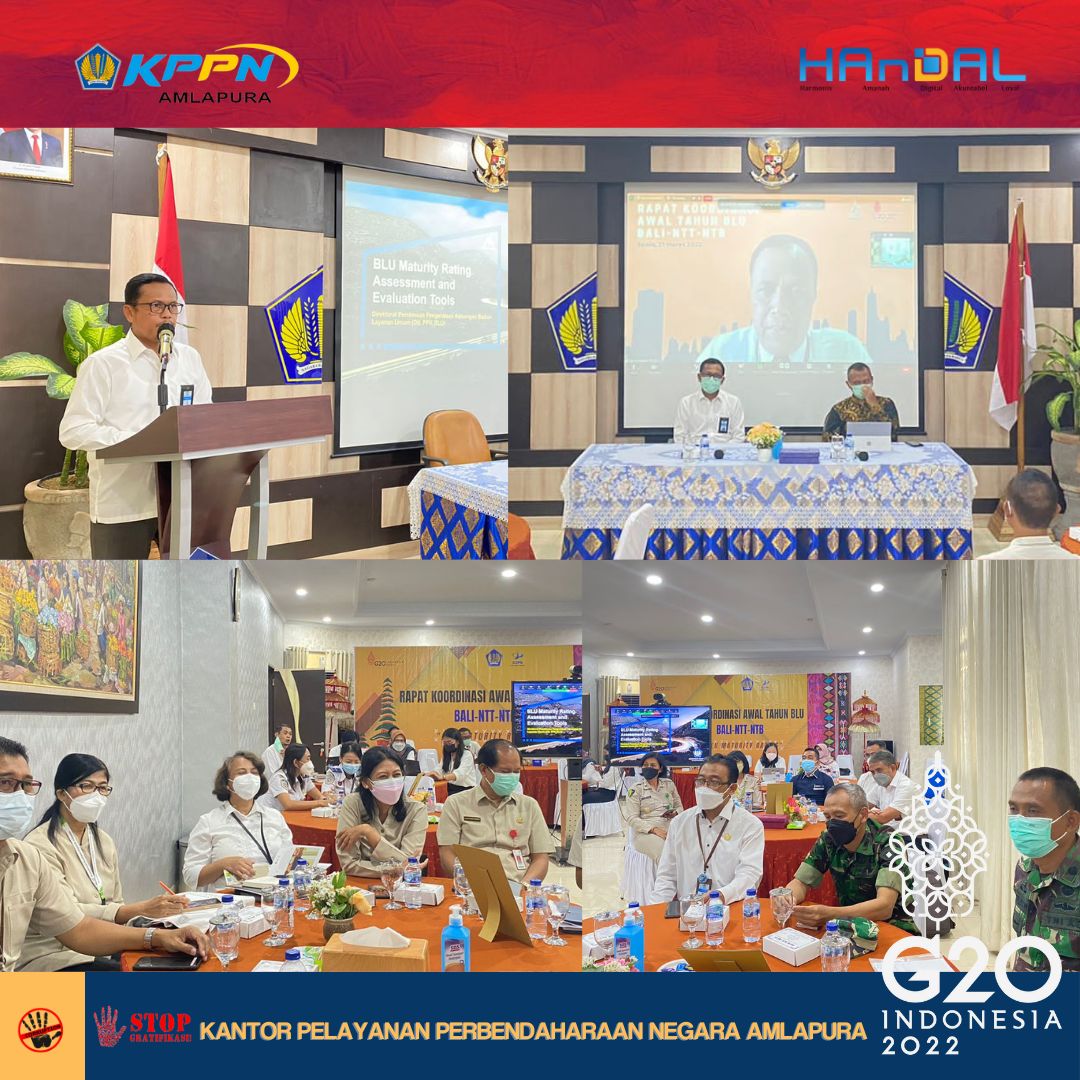 Hari Senin tanggal 21 Maret 2022, Kepala KPPN Amlapura dan staf dari Seksi PDMS KPPN Amlapura memenuhi undangan dari Direktur PPK BLU dan Kakanwil DJPb Provinsi Bali terkait pelaksanaan Rapat Koordinasi Awal Tahun BLU Regional Bali-NTB dan NTT (secara hybrid).