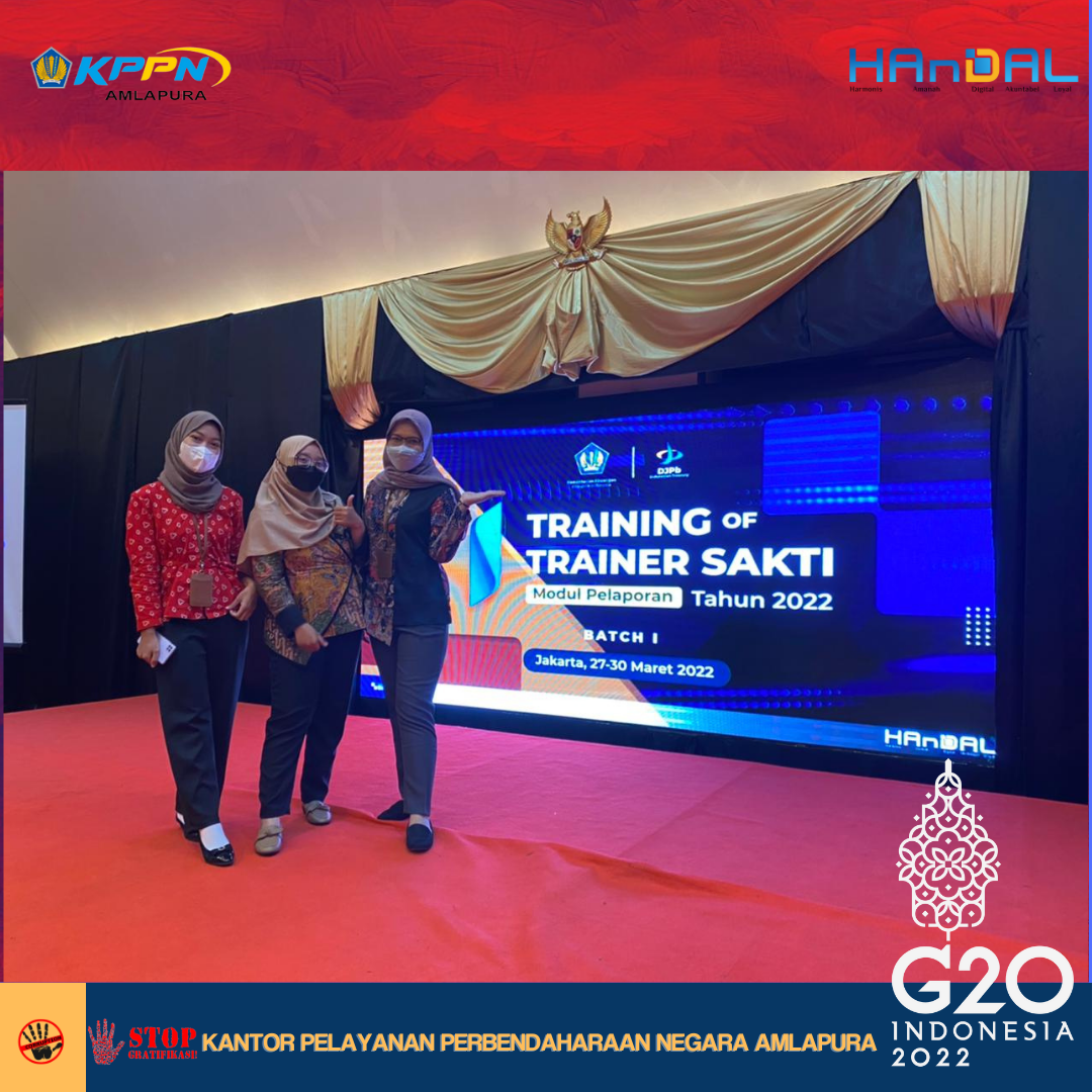 Dalam rangka mendukung pelaksanaan rollout SAKTI Full Modul ke seluruh satuan kerja Kementerian Negara/Lembaga, Direktorat Sistem Informasi dan Teknologi Perbendaharaan (SITP) Direktorat Jenderal Perbendaharaan menyelenggarakan acara Training of Trainer (TOT) SAKTI Modul Pelaporan. Acara ini diselenggarakan pada tanggal 27-30 Maret 2022 di Jakarta dan diikuti oleh Trainer SAKTI Modul Pelaporan KPPN Amlapura, Emyliana Rosyadah. TOT SAKTI Modul Pelaporan merupakan tahapan penting untuk mengawal proses migrasi saldo awal dan implementasi Aplikasi SAKTI kedepannya.