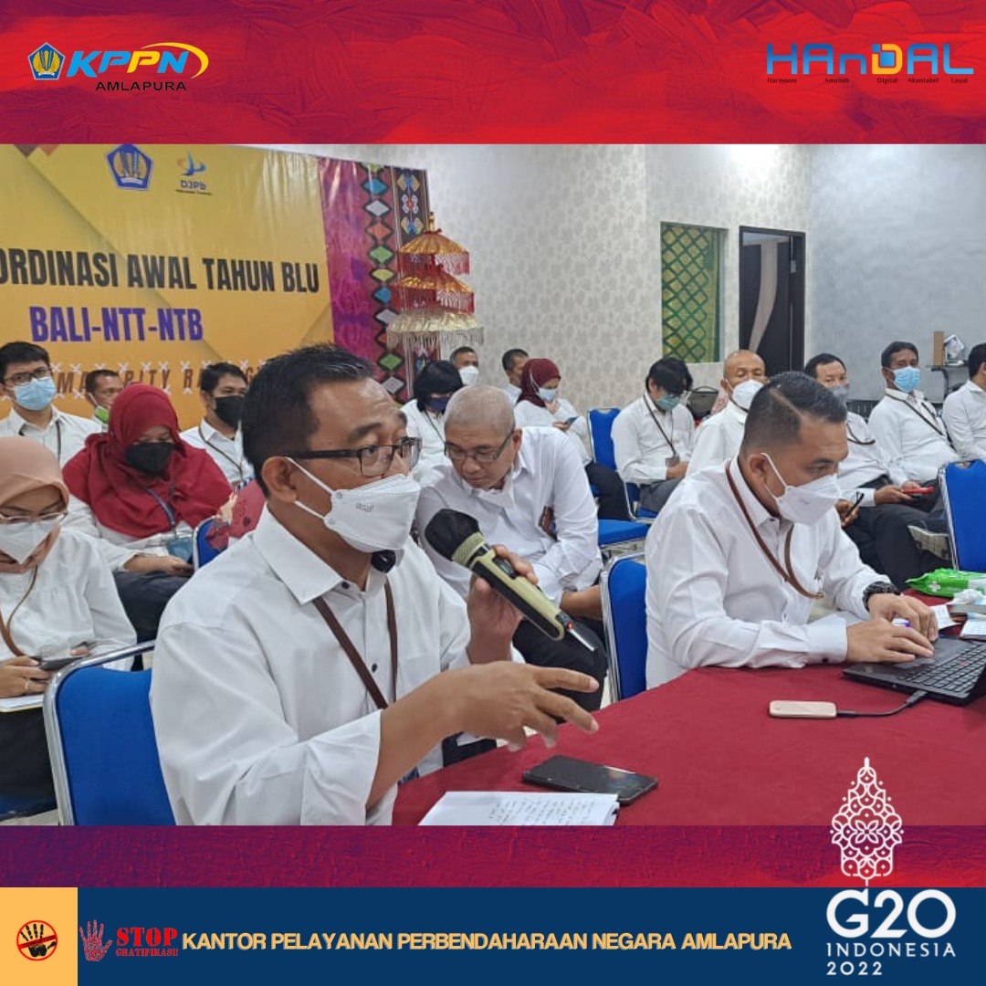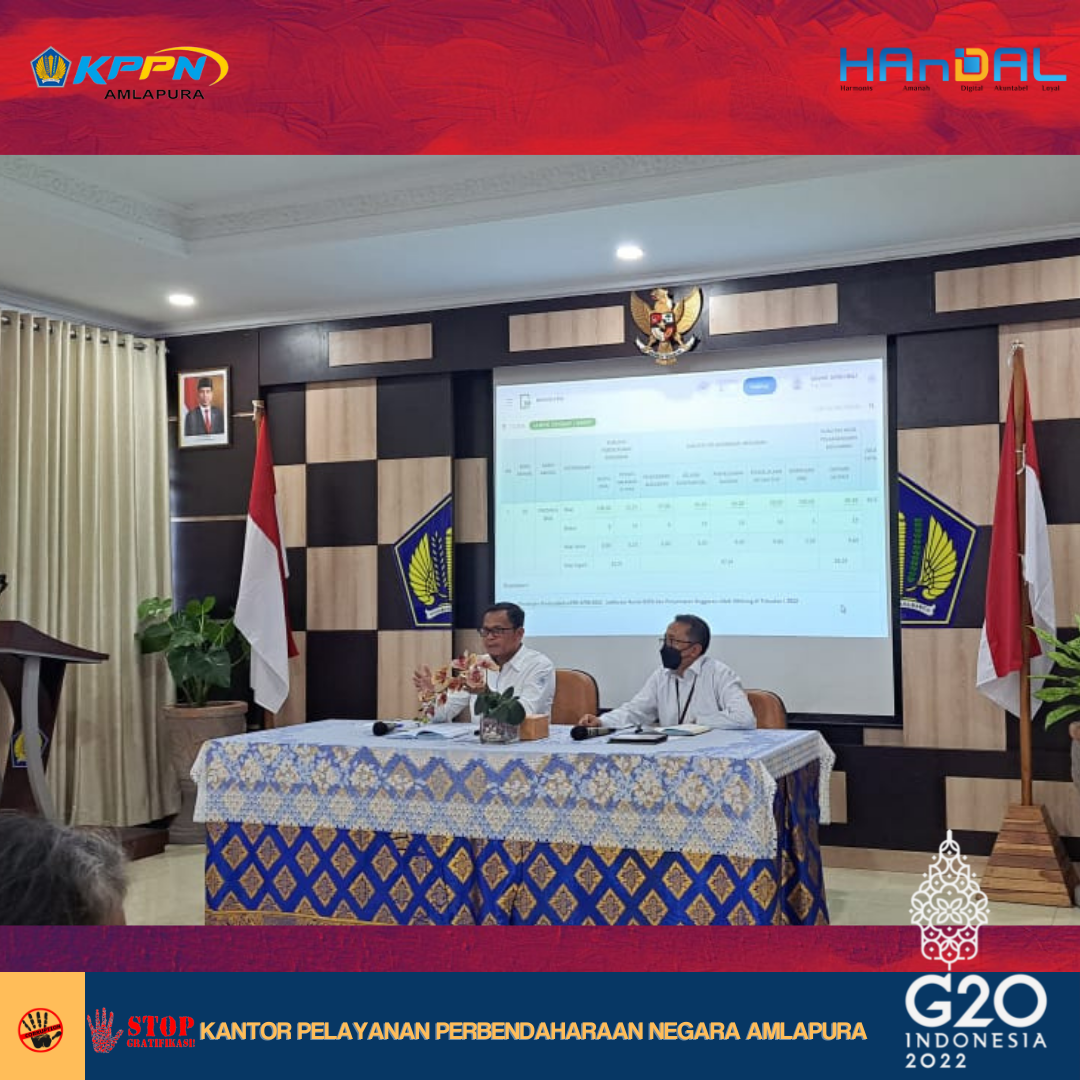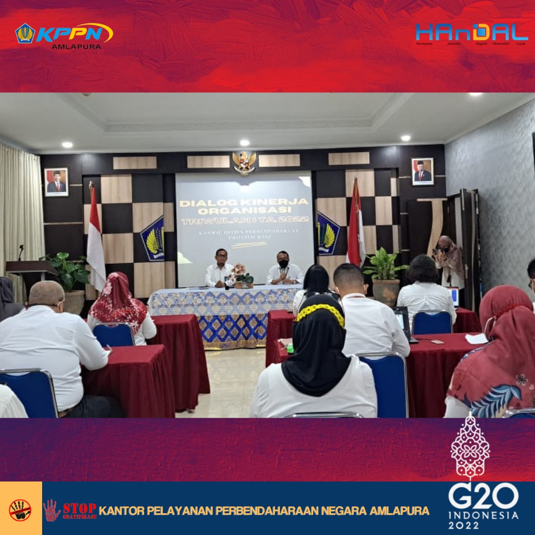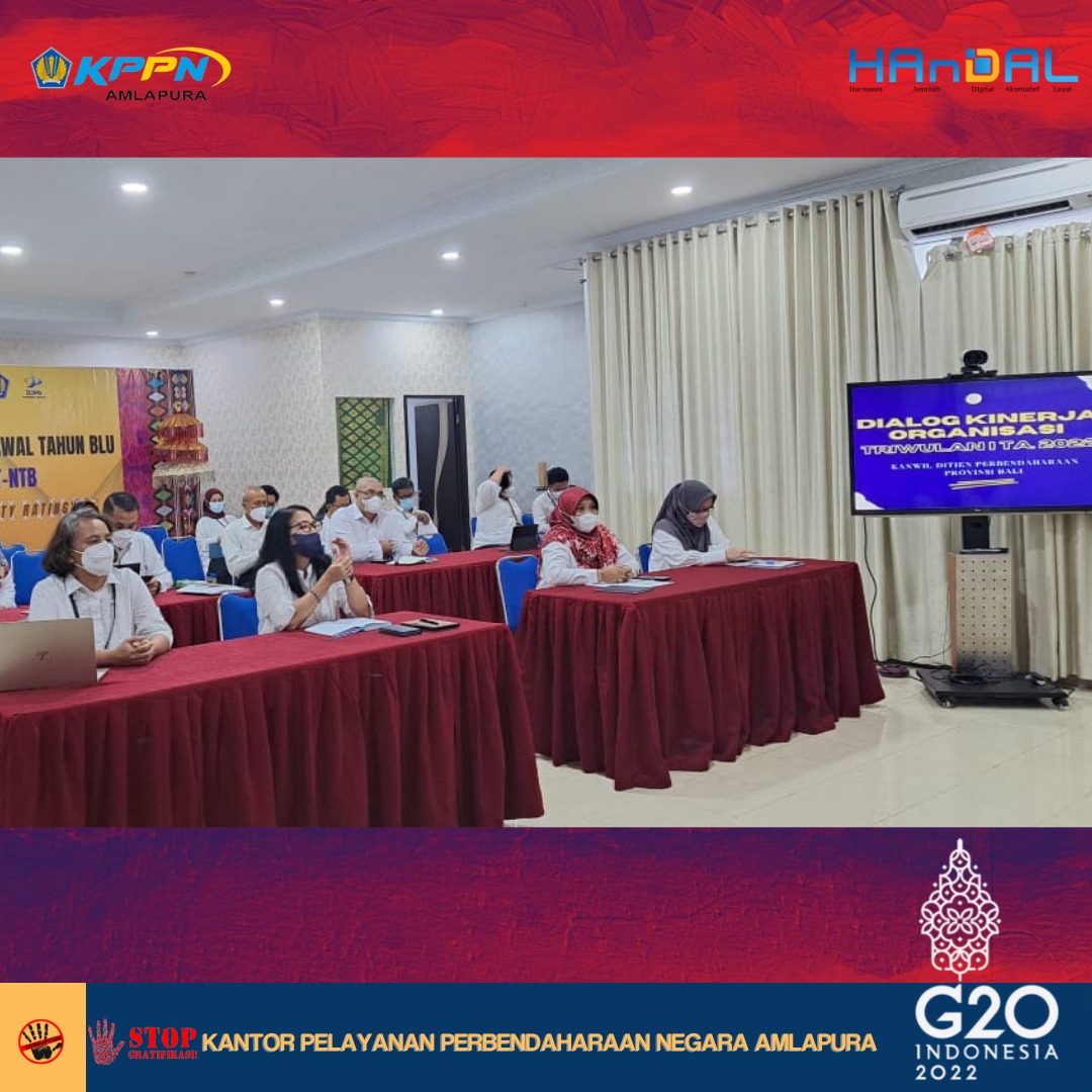 Senin, 11 April 2022, telah dilaksanakan kegiatan Dialog Kinerja Organisasi (DKO) periode Triwulan I Tahun 2022 lingkup Kanwil DJPb Provinsi Bali. Kegiatan ini mengevaluasi capaian kinerja dari masing- masing IKU Kemenkeu-Three selama periode Triwulan I. Salah satu Indikator Kinerja Utama Kepala KPPN adalah kinerja pelaksanaan anggaran (IKPA) satker dalam wilayah kerja KPPN. Oleh karenanya, kami berterima kasih atas sinergi dan kinerja dari satker dalam wilayah KPPN Amlapura yang telah terlaksana dengan baik dan berharap agar hal tersebut dapat ditingkatkan pada periode tahun 2022 ini.