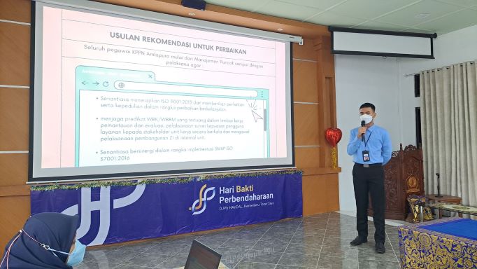 Sesuai dengan Kepdirjen Keputusan Direktur Jenderal Perbendaharaan Nomor KEP-151/PB/2015 tentang Pedoman Implementasi Sistem Manajemen Mutu ISO 9001:2015 pada KPPN, Rapat Tinjauan Manajemen dilaksanakan untuk mengetahui efektivitas pelaksanaan SMM ISO 9001:2015. Sejalan dengan hal tersebut, hari Rabu tanggal 27 April 2022, KPPN Amlapura melaksanakan Rapat Tinjauan Manajemen Periode Semester I Tahun 2022.