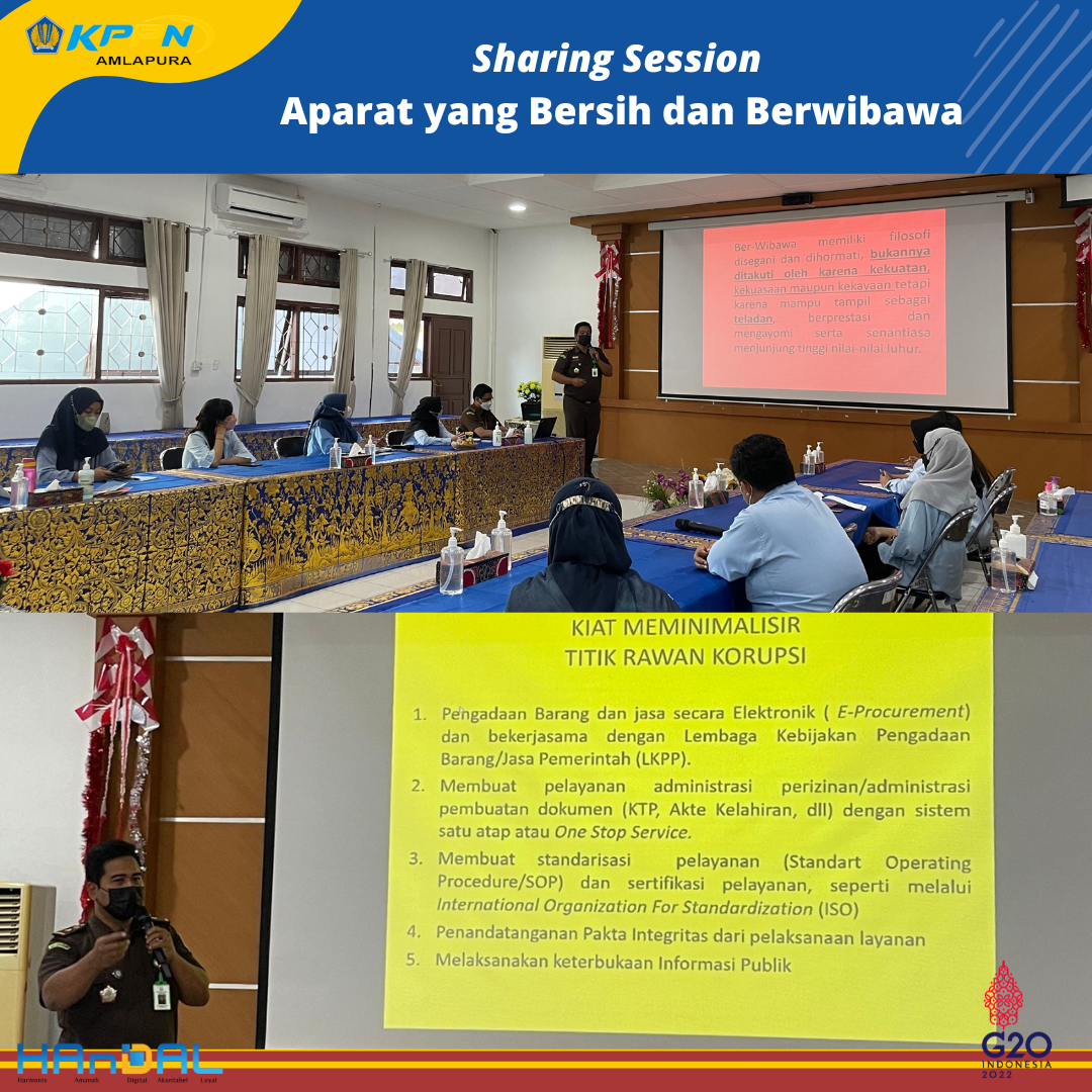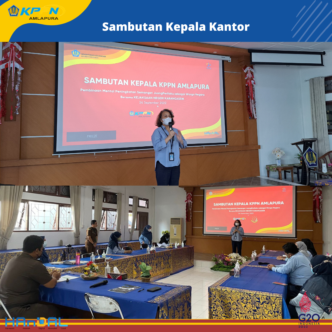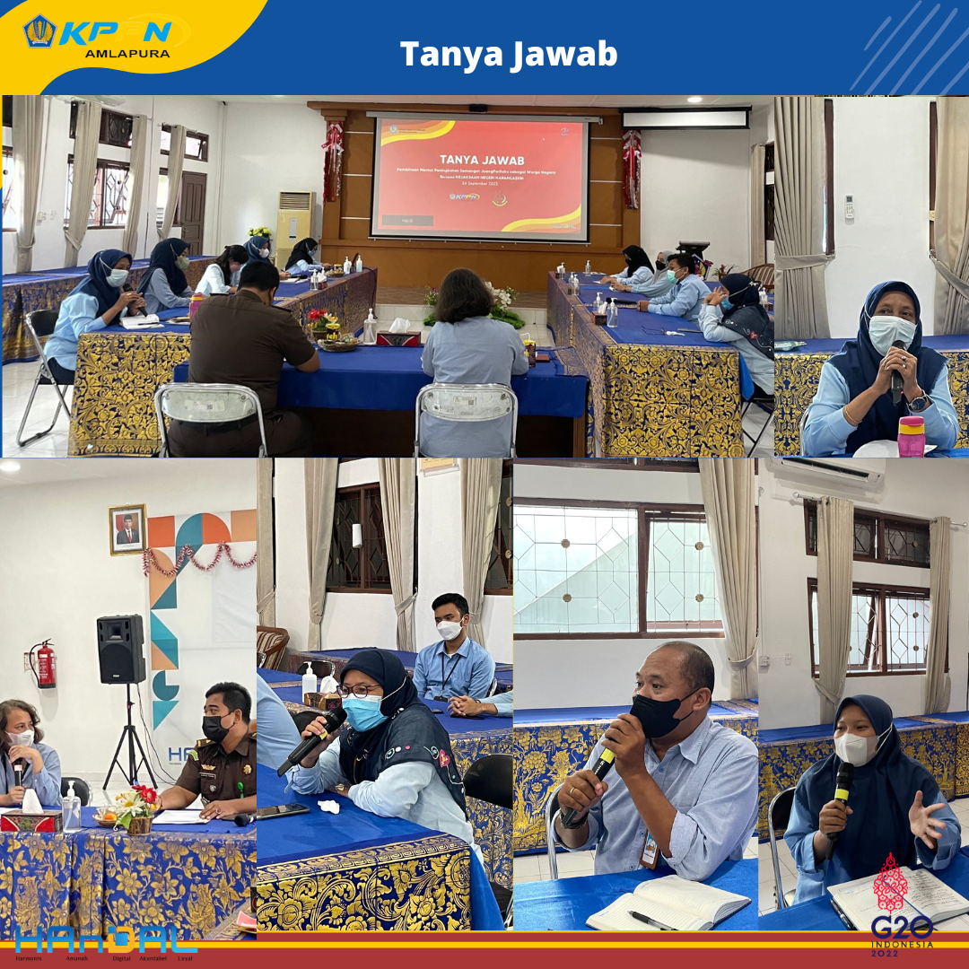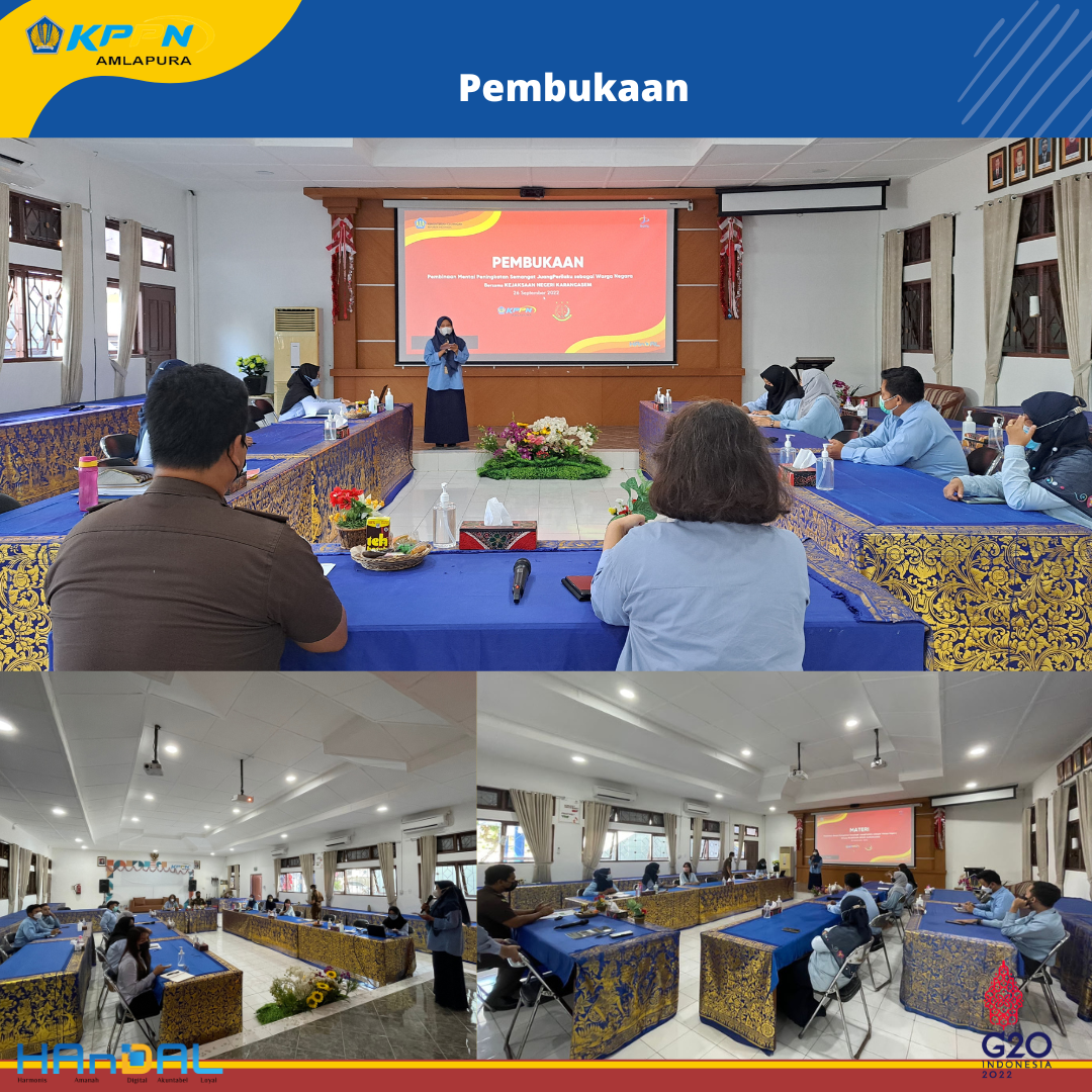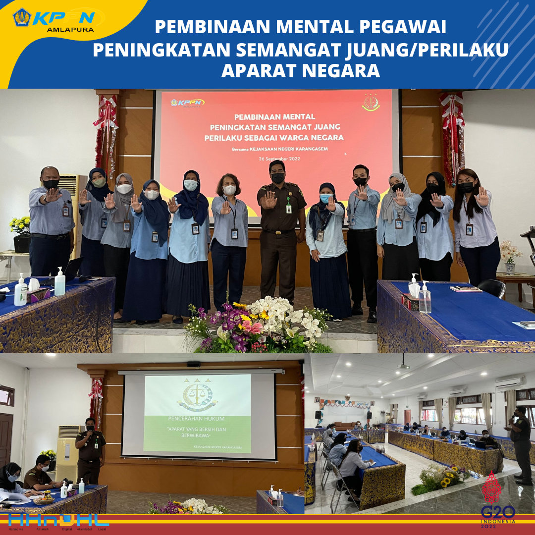 Hari ini, Rabu, 28 September 2022 dilaksanakan kegiatan Pembinaan Mental (Bintal) Juang dengan tema Aparat yang Bersih dan Berwibawa. Narasumber kegiatan ini adalah Bapak Dewa Gede Semara Putra, SH (Kasi Intelijen Kejaksaan Negeri Karangasem).