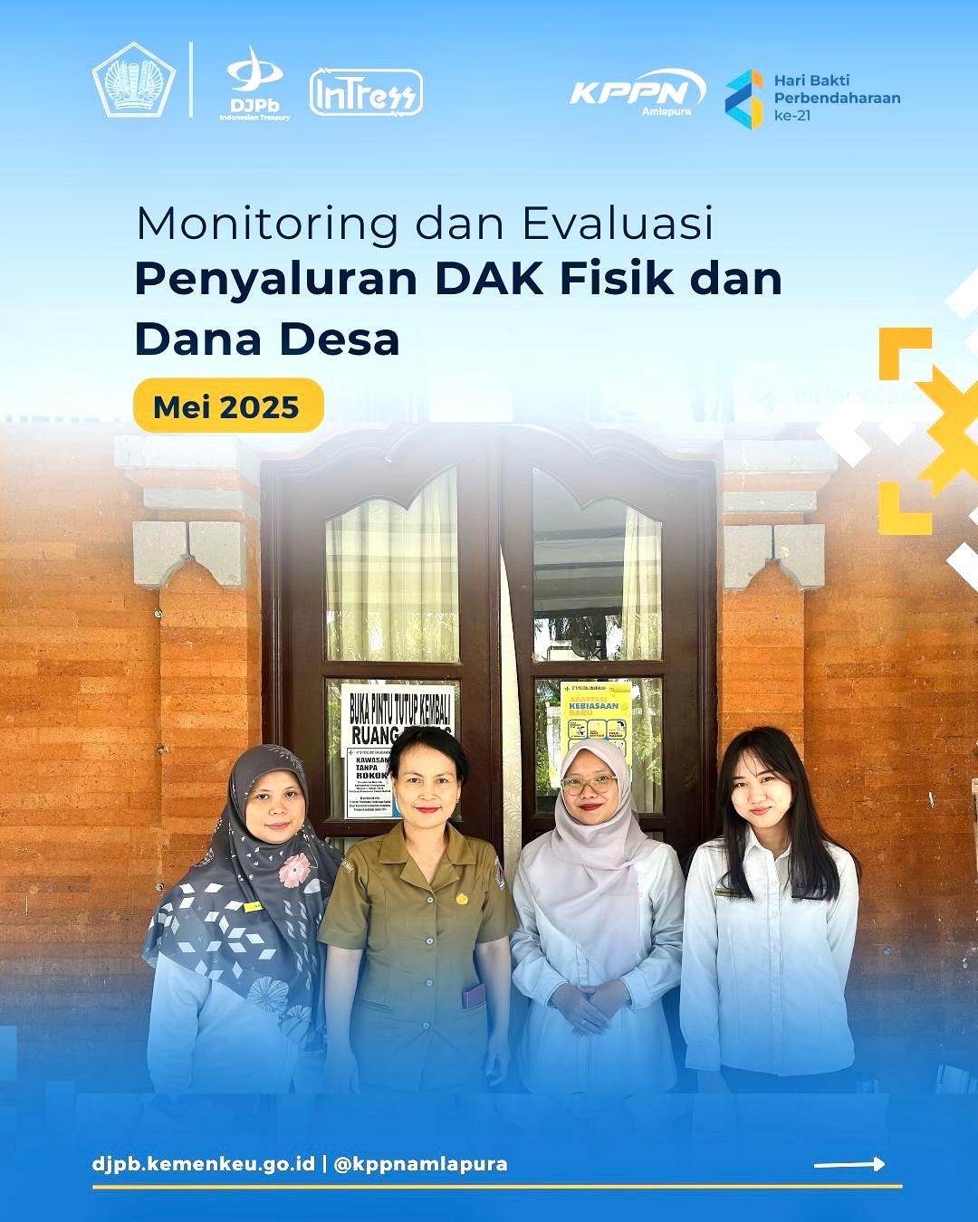 Dalam rangka peningkatan kinerja penyaluran DAK Fisik dan Dana Desa pada Pemerintah Daerah mitra kerja KPPN Amlapura, Tim Local Government KPPN Amlapura melaksanakan kegiatan koordinasi dengan BPKAD dan DPMD Pemda Kab. Bangli, Kab. Klungkung dan Kab. Karangasem. Kegiatan dilaksanakan pada 21, 26 dan 27 Mei 2025.