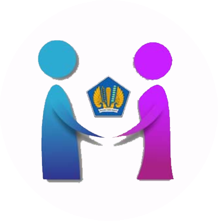 - Gambar Laki‐laki dan perempuan sejajar berpegangan dengan menopang logo Kementerian Keuangan: Adil dan Setara