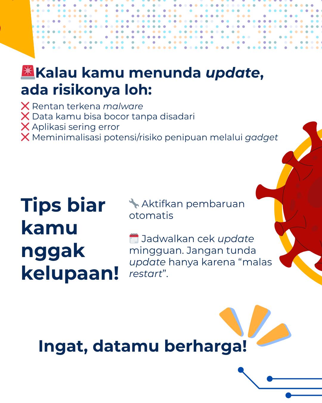 Update itu bukan cuma soal fitur baru, tapi juga soal keamanan data dan gadget kamu, lho! 🔒
