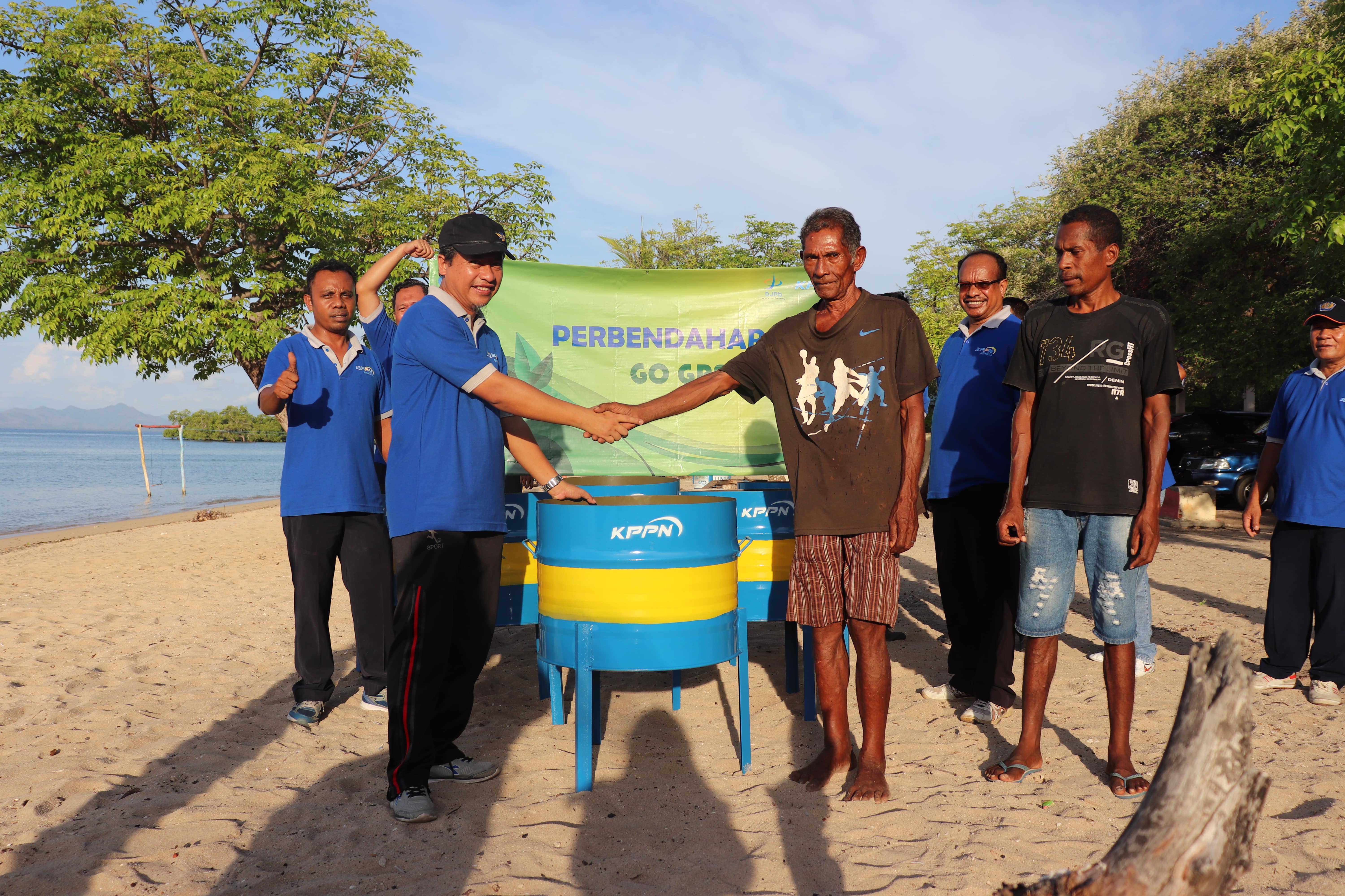 Hari pertama, KPPN Atambua bekerja sama dengan Dinas Pariwisata Kabupaten Belu, mengunjungi Pantai Pasir Putih Atapupu untuk serah terima 6 tempat sampah.