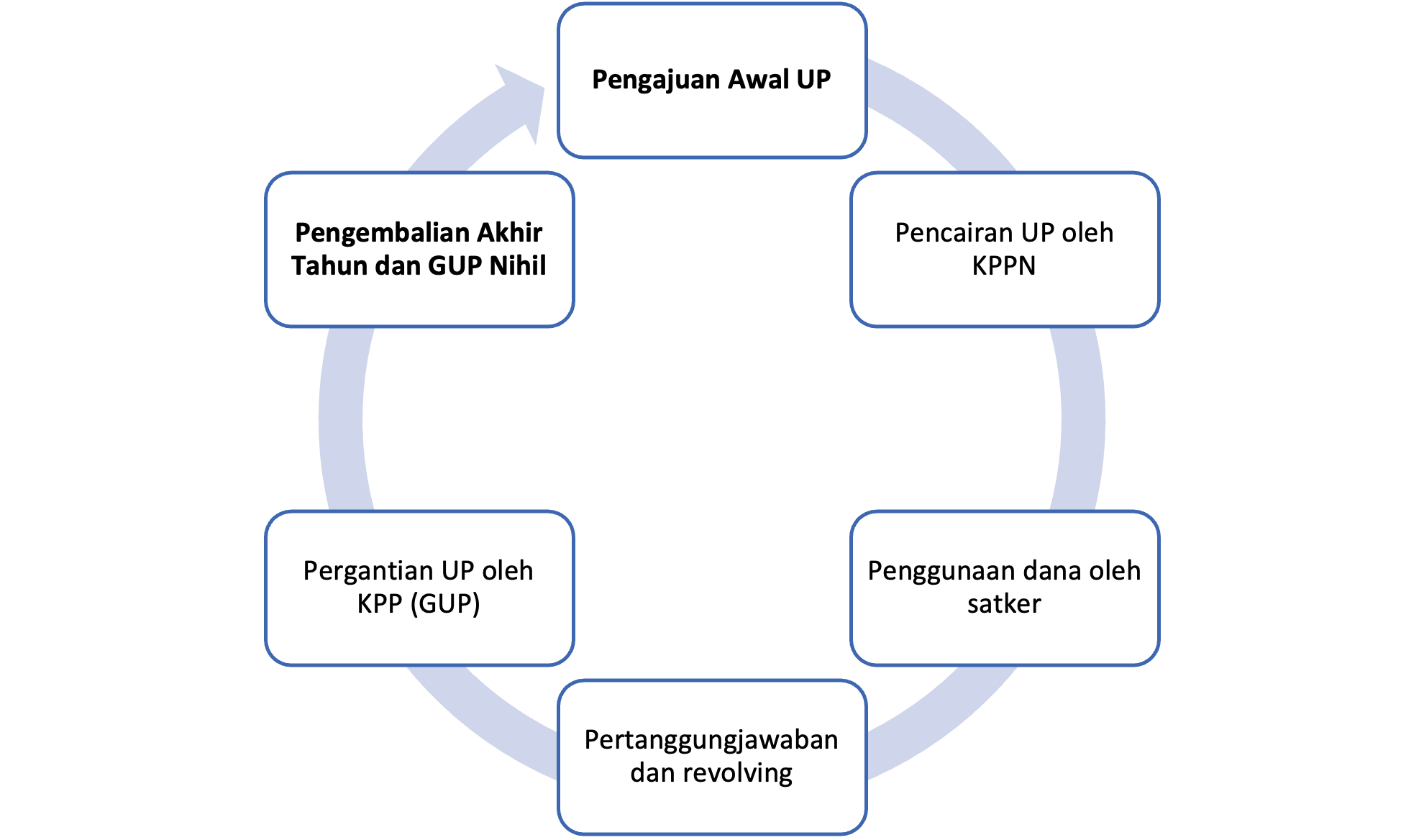 Pada Akhir Tahun Anggaran bendahara melakukan penyelesaian terhadap uang persediaan terkait pelaporan dan pertanggungjawaban penggunaan UP akhir tahun dan penyetoran sisa UP (jika ada).