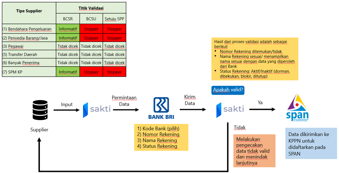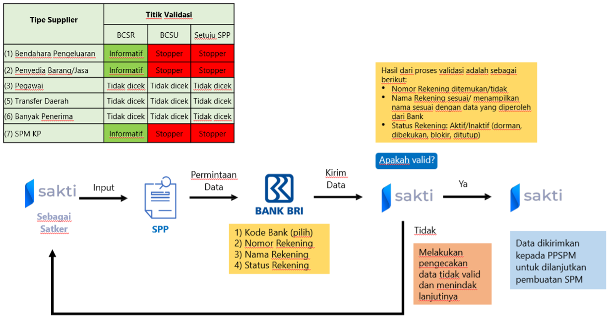 • Pengembangan fitur jenis validasi rekening pada SAKTI dibagai berdasarkan tipe supplier: