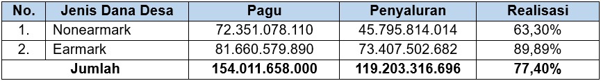 Data Penyaluran Dana Desa Balikpapan per tanggal 30 November 2025