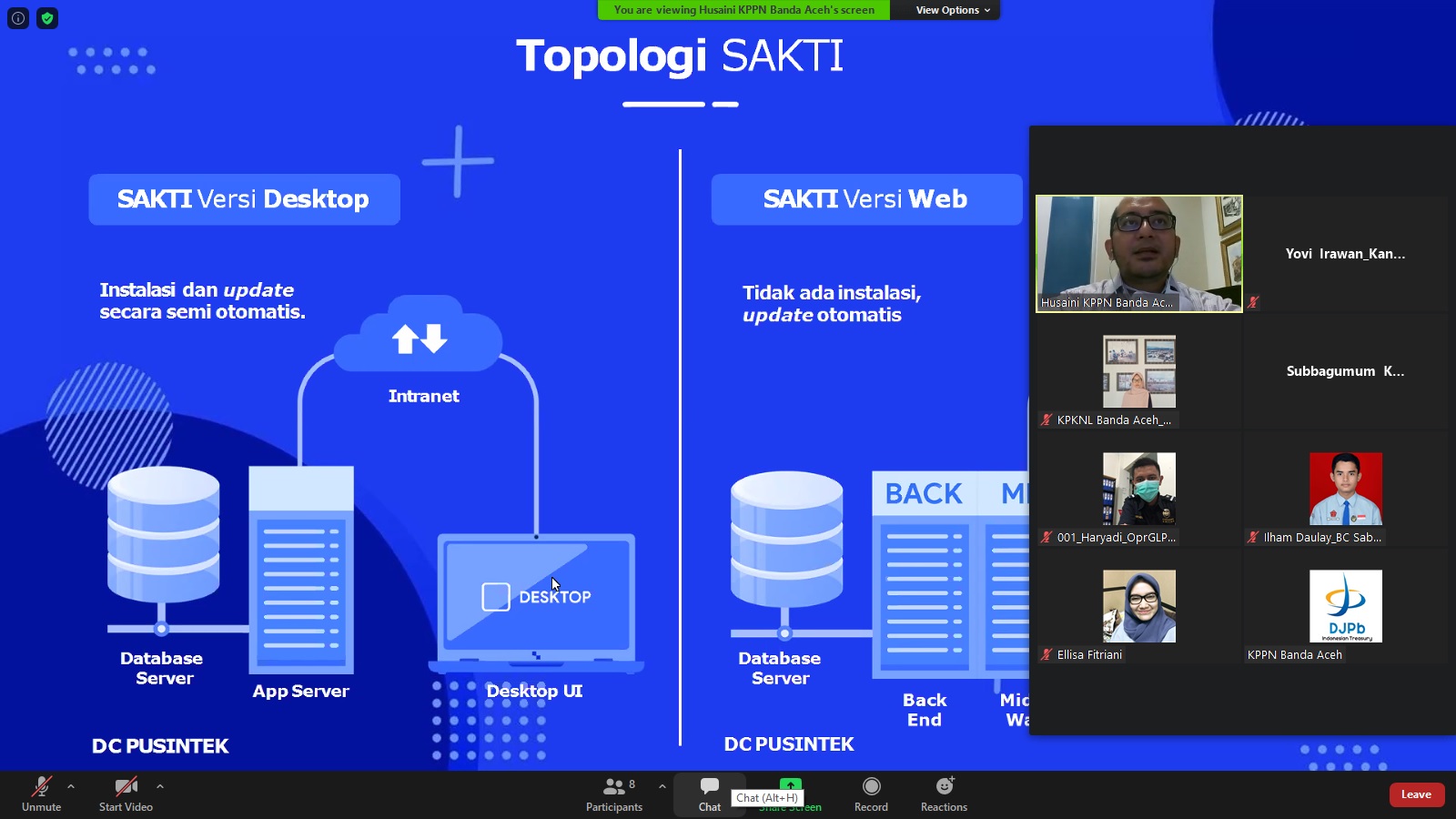 Memberikan pemahaman kepada Satker mengenai pentingnya kesadaran keamanan (security awareness) pada transaksi keuangan negara. Mengingat saat ini masih dalam keadaan darurat Covid-19, selaras dengan protokol kesehatan dalam rangka pencegahan penularan virus Covid-19 kegiatan sosialiasi dilaksanakan secara online melalui aplikasi Zoom Meeting. Adapun peserta yang mengikuti kegiatan tersebut adalah Operator Aplikasi SAKTI pada Satker lingkup wilayah KPPN Banda Aceh yang sudah mengimplementasikan Aplikasi SAKTI berbasis desktop. Hasil yang dicapai dari kegiatan sosialisasi tersebut adalah: