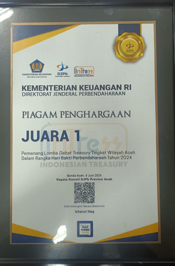 5. Juara 1 Pemenang Lomba Debat Treasury Tingkat Wilayah Aceh Tahun 2024