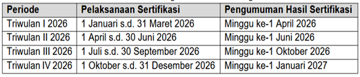 Sertifikasi dilakukan secara triwulanan dengan ketentuan sebagai berikut: