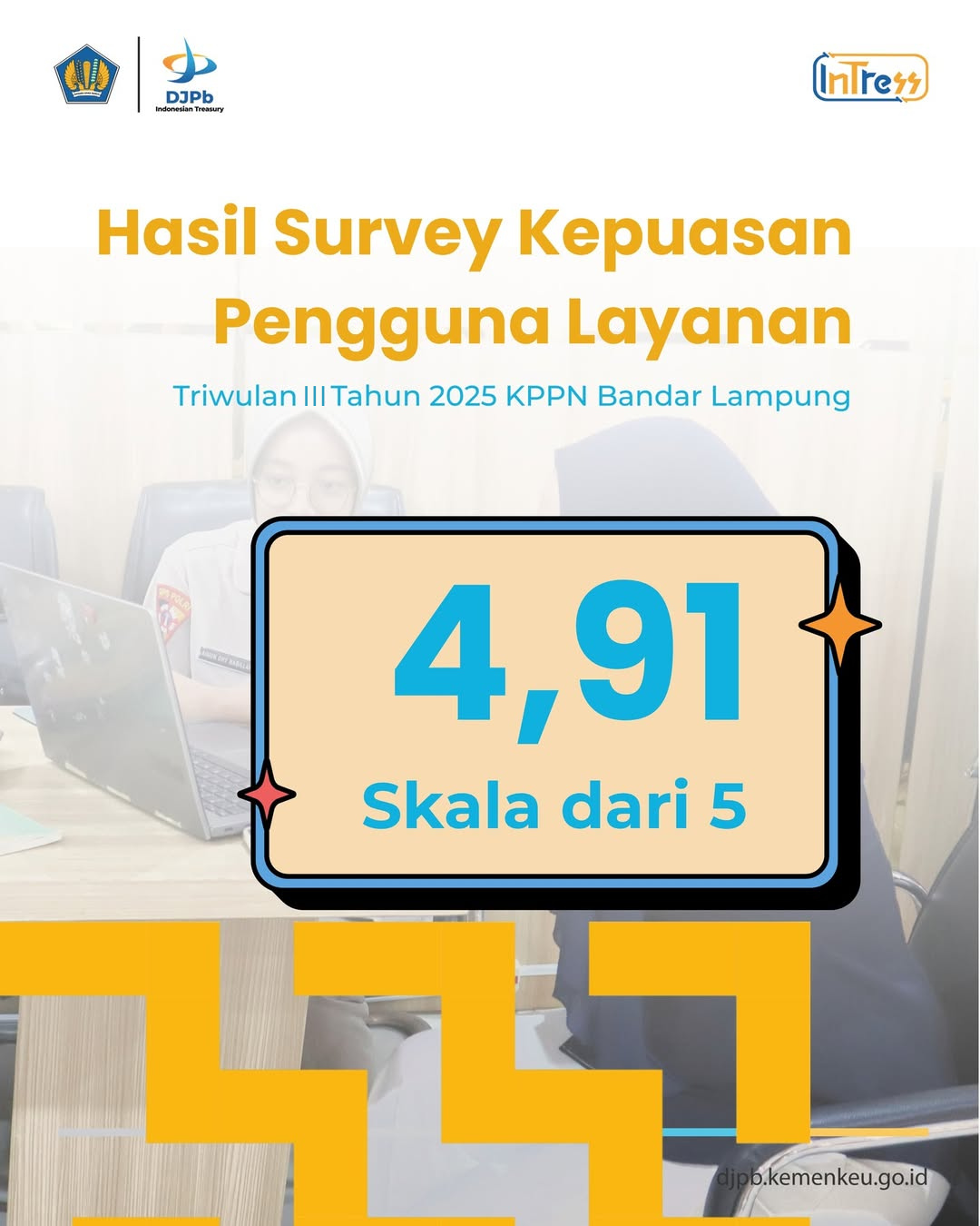 Terimakasih atas kepercayaan seluruh pengguna layanan dan pemangku kepentingan di KPPN Bandar Lampung @ditjenperbendaharaan , bantu kami menjadi semakin baik dengan tidak memberikan atau menjanjikan imbalan dalam setiap pelayanan yang kami berikan.