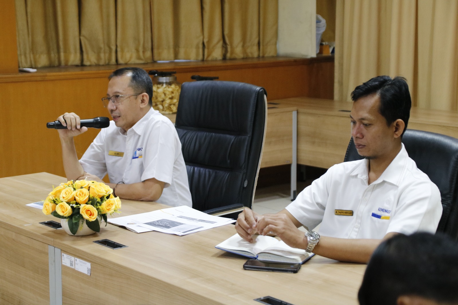 Sesi berikutnya menghadirkan dua narasumber dari pejabat fungsional KPPN Bandung I, yaitu Sri Utami dan Dwi Nur Aisyah, yang memaparkan ketentuan PMK 84/2025 mengenai mekanisme Rekening Penampungan (RPATA). Materi mencakup antara lain pembatasan pemberian kesempatan penyelesaian pekerjaan, ketentuan batas waktu penyampaian SPM, pengaturan RPATA bagi satker BLU, hingga konsekuensi wanprestasi sesuai regulasi pengadaan.