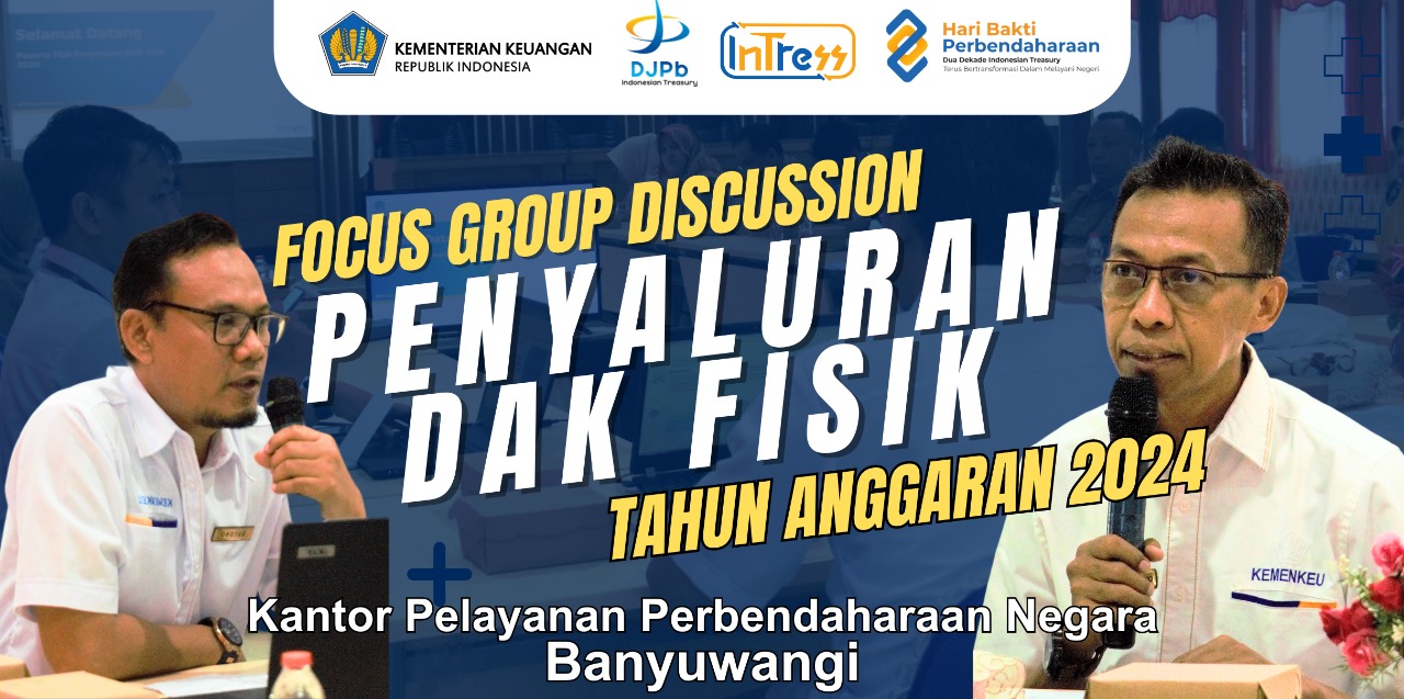 Dalam rangka sinergi dan koordinasi dengan Pemda Kabupaten Banyuwangi serta upaya percepatan penyaluran DAK Fisik Tahun 2024, KPPN Banyuwangi menyelenggarakan kegiatan Focus Group Discussion (FGD) penyaluran DAK Fisk Tahun 2024.