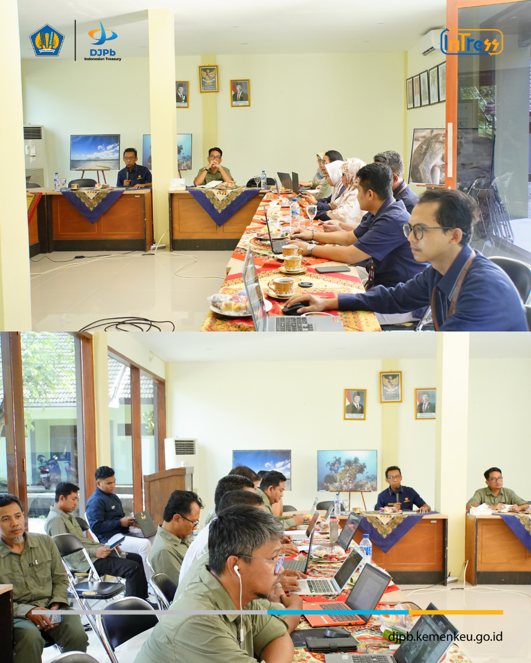 Kegiatan ini diawali dengan sambutan singkat dan penjelasan tentang Balai Taman Nasional Baluran dari Bapak Johan Setiawan selaku Kepala Kantor. Kemudian dilanjutkan oleh Bapak Sugeng Winarno, selaku Kepala KPPN Banyuwangi. Selanjutnya, dilanjutkan oleh Bapak Mukhtar Ali Marzuki, selaku Ketua Seksi PDMS KPPN Banyuwangi, yang memberikan penjelasan mendalam mengenai evaluasi pelaksanaan anggaran. Diskusi ini mencakup berbagai aspek, antara lain pagu dan realisasi belanja dalam 3 tahun terakhir, deviasi anggaran, tingkat penyerapan anggaran, pengelolaan UP dan TUP, digitalisasi pengelolaan keuangan, serta quality assurance pelaksanaan anggaran di Satker BTN Baluran.