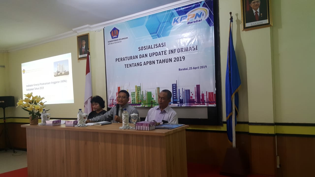 Kamis 25 April 2019, KPPN Barabai memberikan sosialisasi peraturan dan update informasi terbaru mengenai pelaksanaan APBN 2019 kepada seluruh satuan kerja di wilayah Kabupaten HST, HSS, dan Tapin.