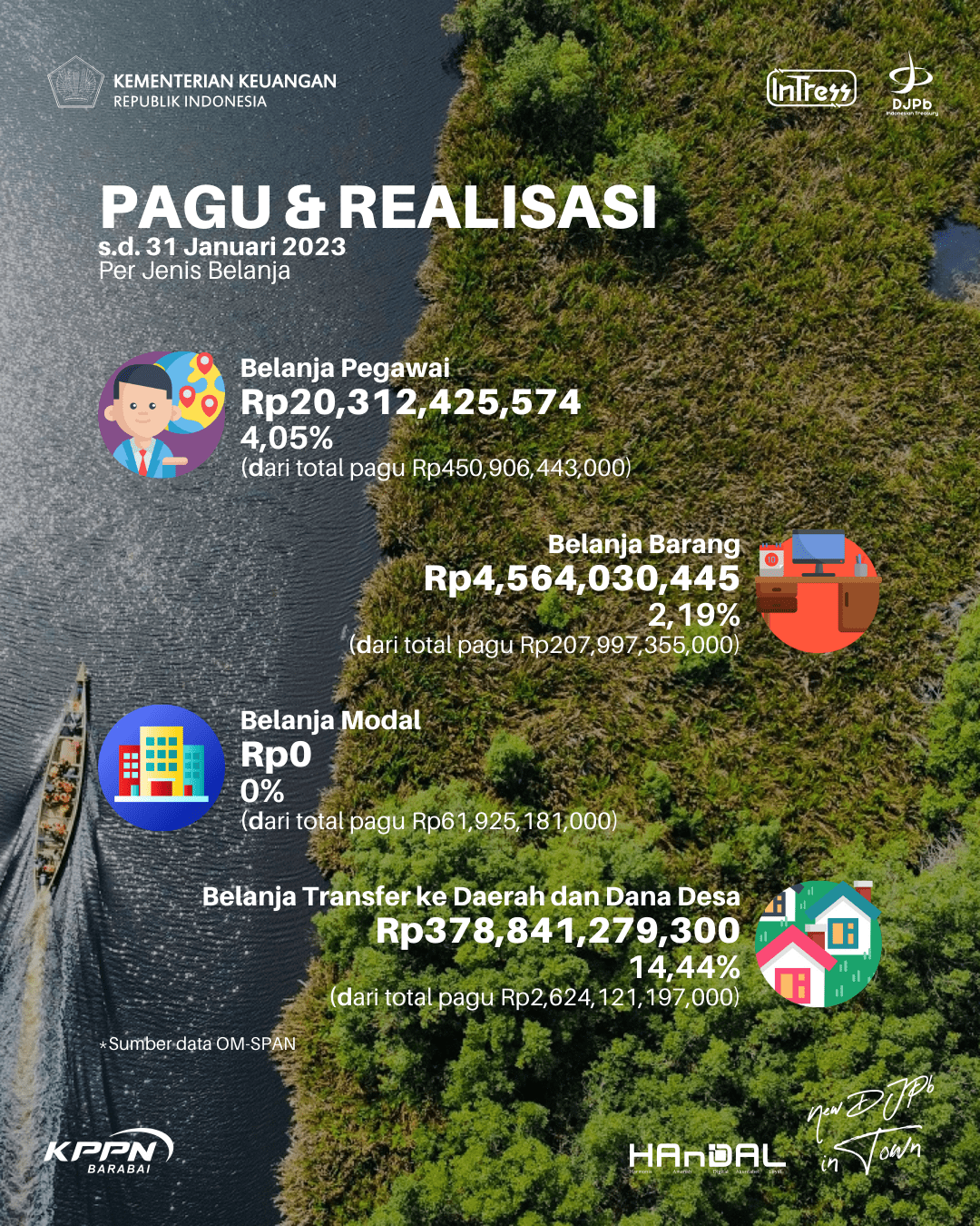 Memasuki bulan kedua di tahun 2023, berikut realisasi APBN wilayah kerja Lingkup KPPN Barabai pada bulan Januari ✨.