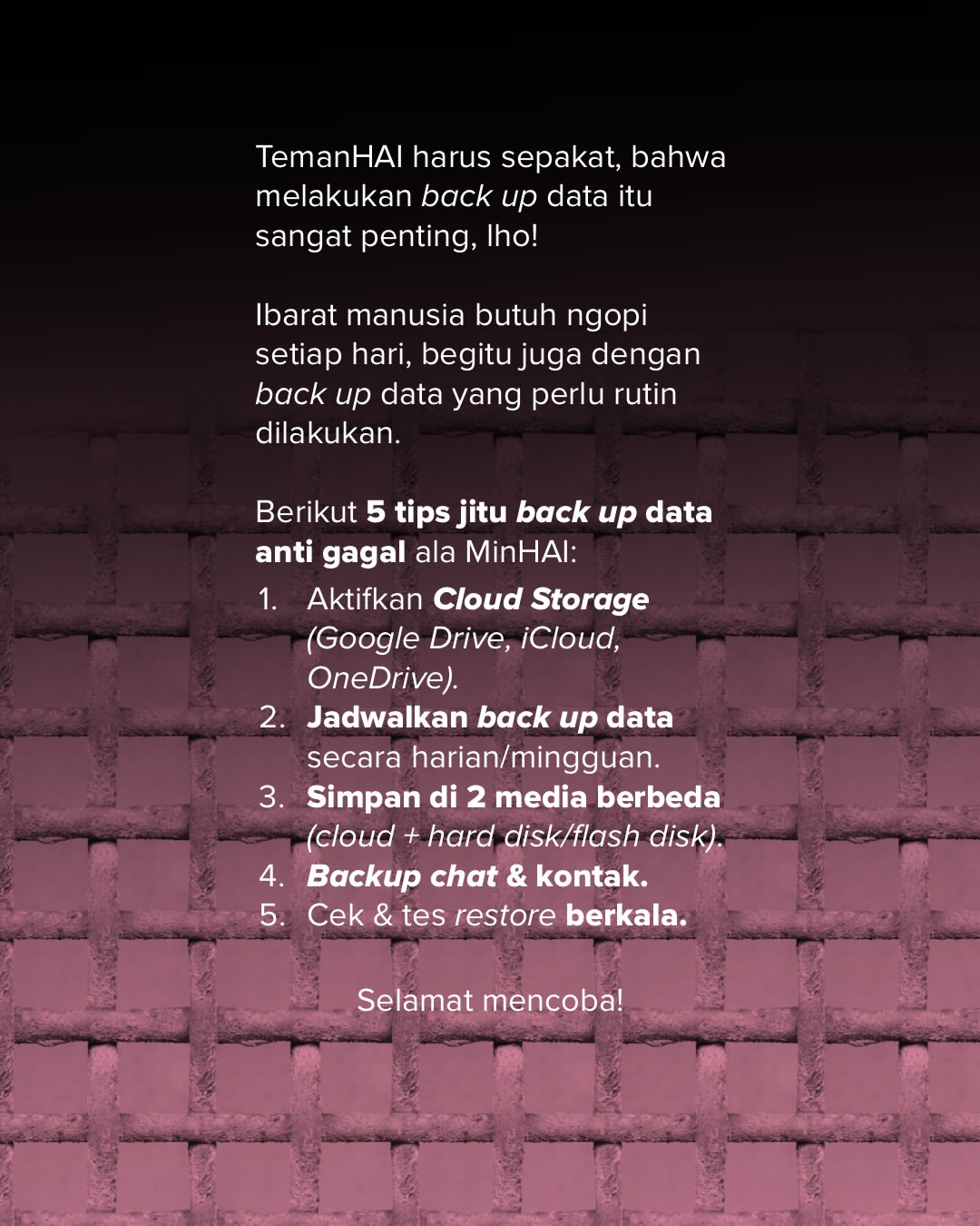 #TemanHAI, jangan remehkan pentingnya back up data!