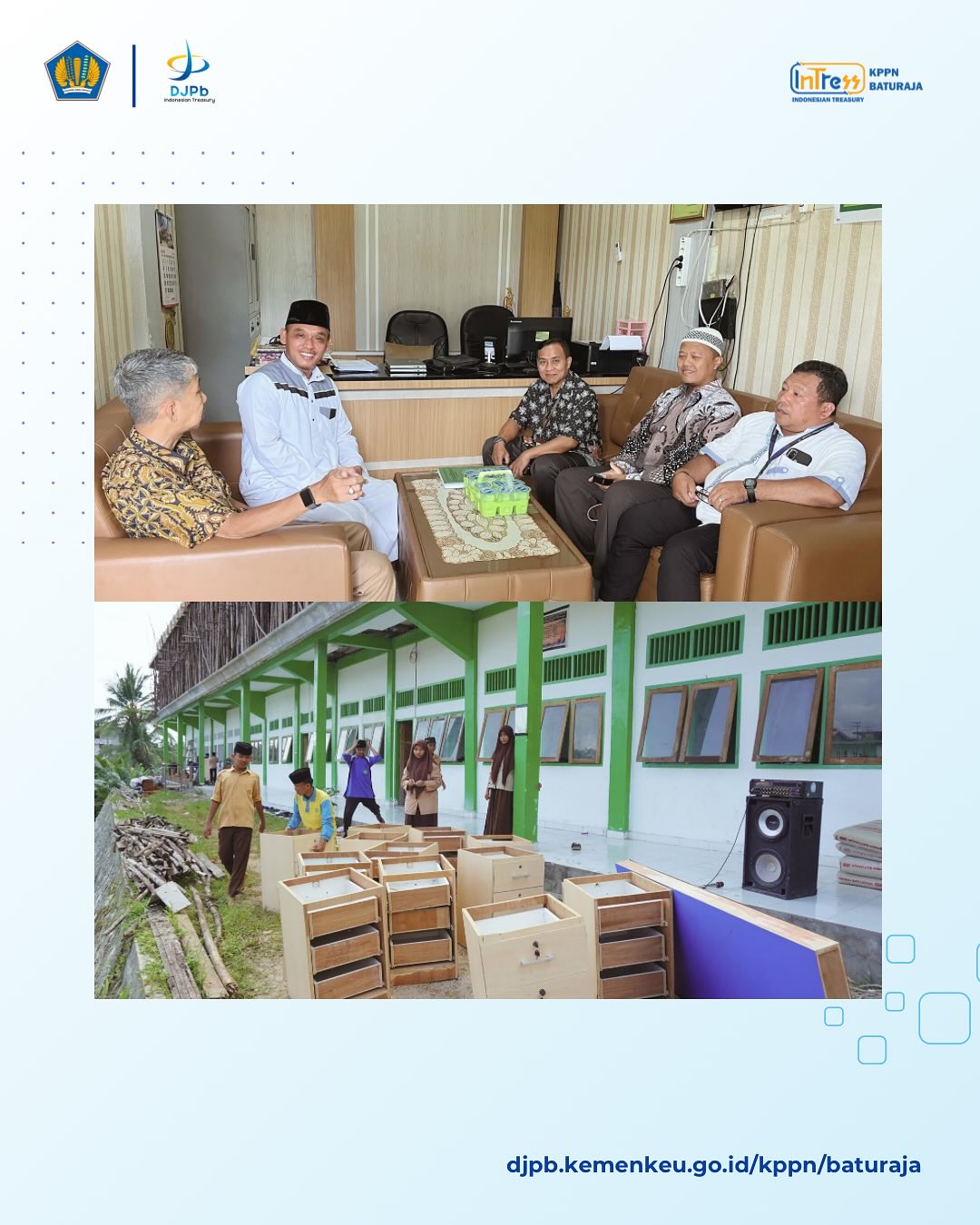 Pemindahtanganan BMN Melalui Hibah Pada tanggal 25 April 2025, telah dilaksanakan kegiatan pemindahtanganan Barang Milik Negara (BMN) dengan mekanisme hibah dari KPPN Baturaja kepada Pondok Pesantren Asyifa’, Baturaja. Kegiatan ini merupakan bentuk nyata sinergi antara pengelolaan aset negara dan dukungan terhadap sektor pendidikan keagamaan. Semoga hibah ini membawa manfaat besar bagi kegiatan dan pengembangan pondok pesantren serta para santri di Pondok Pesantren Asyifa’ Baturaja. #HibahBMN #KPPNBaturaja