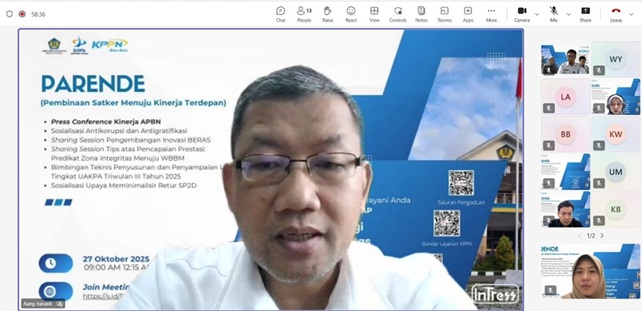 BAU-BAU – Dalam upaya mewujudkan tata kelola pemerintahan yang bersih, transparan, dan akuntabel di wilayah Kepulauan Buton, Kantor Pelayanan Perbendaharaan Negara (KPPN) Tipe A2 Bau-Bau menyelenggarakan kegiatan Sosialisasi Antikorupsi dan Antigratifikasi kepada pihak eksternal pada Senin (27/10/2025). Kegiatan yang dilaksanakan secara daring ini diikuti oleh pejabat perbendaharaan dan operator dari 106 Satuan Kerja (Satker) Kementerian/Lembaga mitra kerja KPPN Bau-Bau.