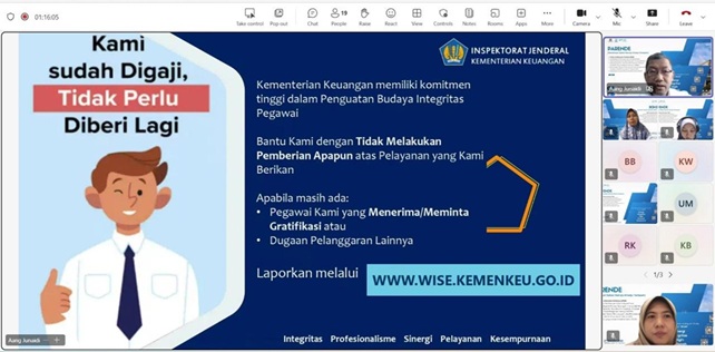 Dalam paparannya, narasumber menjelaskan beberapa instrumen krusial dalam pemberantasan korupsi di lingkungan Kementerian Keuangan, di antaranya: