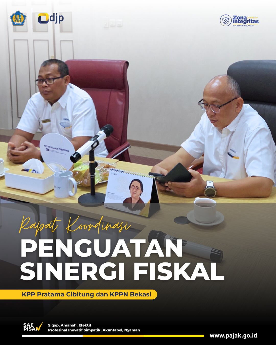 Kepala kantor dan Kepala Seksi Bank KPPN Bekasi mengunjungi KPP Pratama Cibitung guna membagikan arahan terkait mekanisme pemberian dana ke daerah sebagai bagian dari upaya peningkatan kualitas penyaluran anggaran yang efektif dan bertanggung jawab.