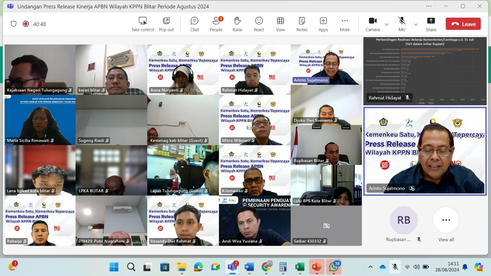 Sebagai wujud dari sinergi dan kolaborasi yang kuat, unit Kementerian Keuangan regional Blitar menggelar konferensi pers mengenai Kinerja APBN Regional Blitar periode data sampai dengan 31 Juli 2024.