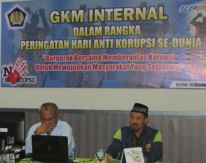 Pada Sesi GKM Internal, KPPN Blitar mengundang Ustadz Drs. Abdul Latif, yang memberikan tausiah bagaimana melihat antIkorupsi dari perspektif yang berbeda, pendekatan sisi religi yang menanamkan terutama nilai-nilai kejujuran dan integritas.