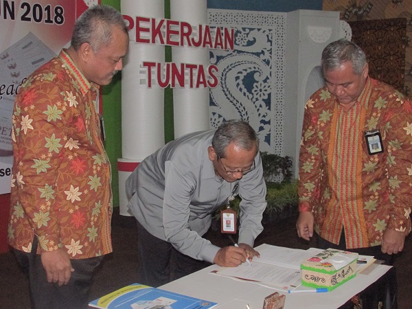 Secara simbolis DIPA APBN Tahun Anggaran 2018 diserahkan oleh Kepala KPPN Blitar berturut-turut kepada Teguh Pribadi Prasetya selaku Kuasa Pengguna Anggaran Satker KPP Pratama Blitar dan Suyatno selaku Kuasa Pengguna Anggaran Satker Perpustakaan Nasional Bung Karno