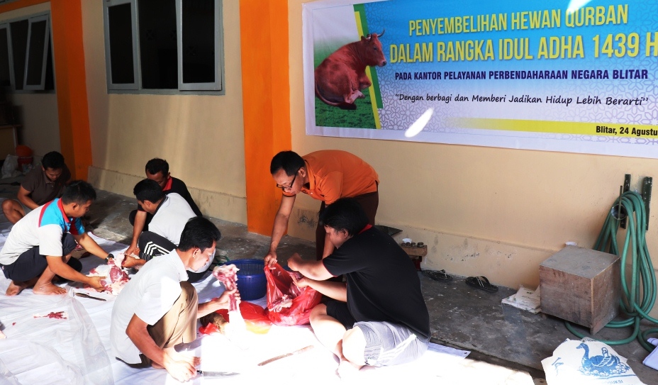 Penyembelihan hewan kurban seekor sapi yang merupakan sumbangsih berasal dari 7 orang pejabat/pegawai KPPN Blitar menghasilkan 133 kg atau 187 kantong daging yang didistribusikan ke para mustahiq masyarakat sekitar Kabupaten dan Kota Blitar.