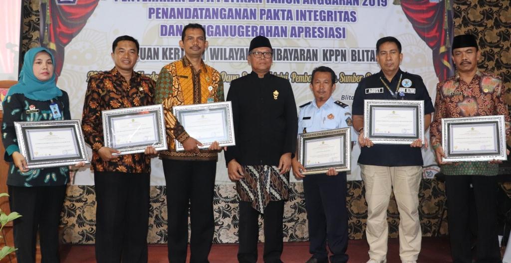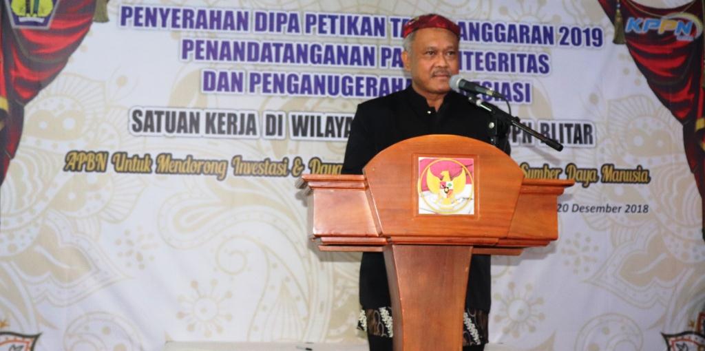 Secara simbolis berturut-turut DIPA diserahkan oleh Kepala KPPN Blitar, Herbudi Adrianto kepada KPA Satker Polres Blitar Kota, Satker Kejaksaan Negeri Tulung Agung, Satker Akademi Komunitas Negeri Putra Sang Fajar Blitar, Satker KPP Pratama Tulung Agung dan Satker MAN Wlingi Kab. Blitar. Dilanjutkan dengan prosesi penandatanganan Pakta Integritas yang merupakan komitmen bersama untuk mengelola DIPA TA 2019 dengan prinsip-prinsip tata kelola Good Governance.