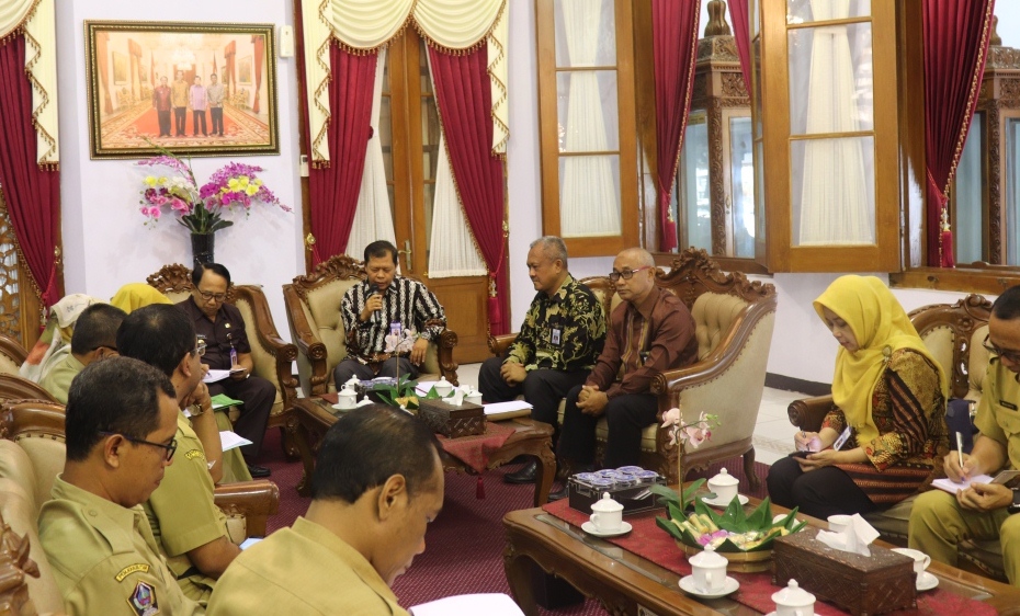 Blitar, http://www.djpbn.kemenkeu.go.id/kppn/blitar/id/ - Bertempat di Pendopo Ronggo Hadinegoro Selasa (19/3) Bapak Rijanto, Bupati Blitar menerima kunjungan kerja Ludiro, Kepala Kantor Wilayah Ditjen Perbendaharaan Provinsi Jawa Timur, sekaligus beraudiensi dalam membangun sinergi mengawal percepatan penyaluran DAK Fisik dan Dana Desa tahun 2019.