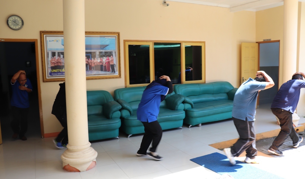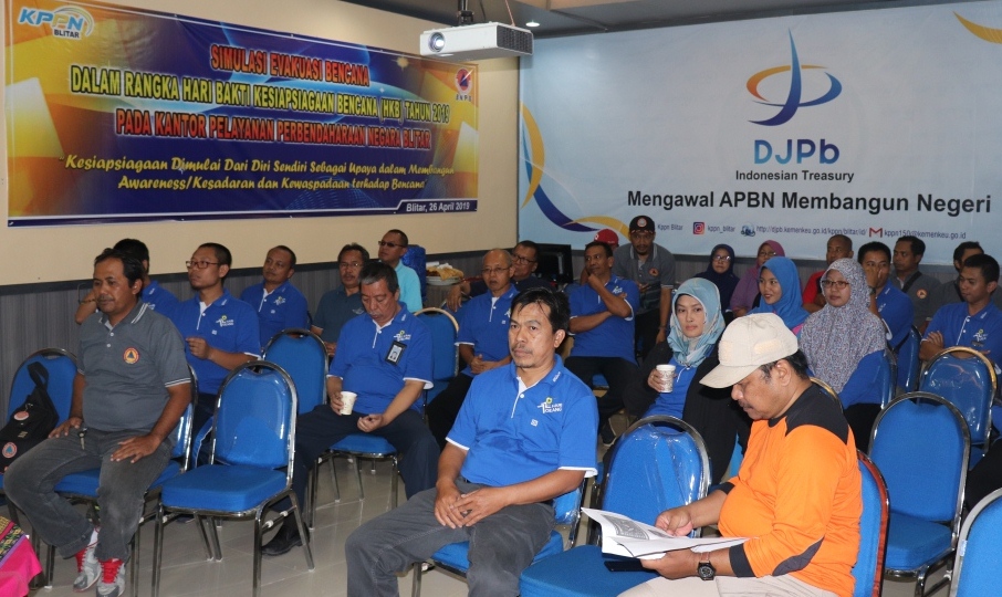 Kantor Pelayanan Perbendaharaan Negara Blitar bekerja sama dengan Badan Kesatuan Bangsa dan Penanggulangan Bencana Daerah (BPBD) kota Blitar Jumat (26/4) melaksanakan simulasi evakuasi bencana dengan mengusung tema “Kesiapsiagaan Dimulai dari Diri Sendiri Sebagai Upaya dalam Membangun Awareness/Kesadaran dan Kewaspadaaan terhadap Bencana” bagi seluruh pegawai Kantor Pelayanan Perbendaharaan Negara Blitar.