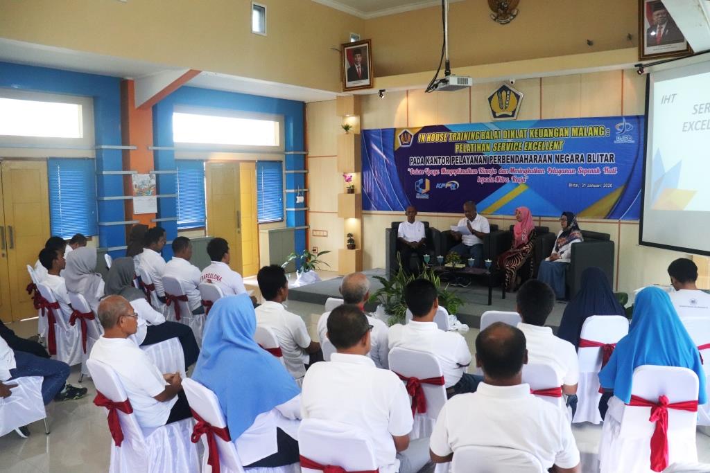 Berangkat dari kesadaran itu, KPPN Blitar menggelar kegiatan In House Excellent Service Training, Jumat (31/1), bertempat di Aula KPPN Blitar. Mengusung tema “Dalam Upya Mengoptimalkan Kinerja dan Meningkatkan Pelayanan Sepenuh Hati kepada Mitra Kerja” kegiatan ini mengundang widyaiswara dari Balai Pendidikan dan Pelatihan Keuangan Malang, Widyarini, S.Psi bertindak selaku narasumber. Kegiatan ini merupakan suatu kolaborasi yang mengedapankan Sinergi antar unit di lingkungan Kementerian Keuangan.
