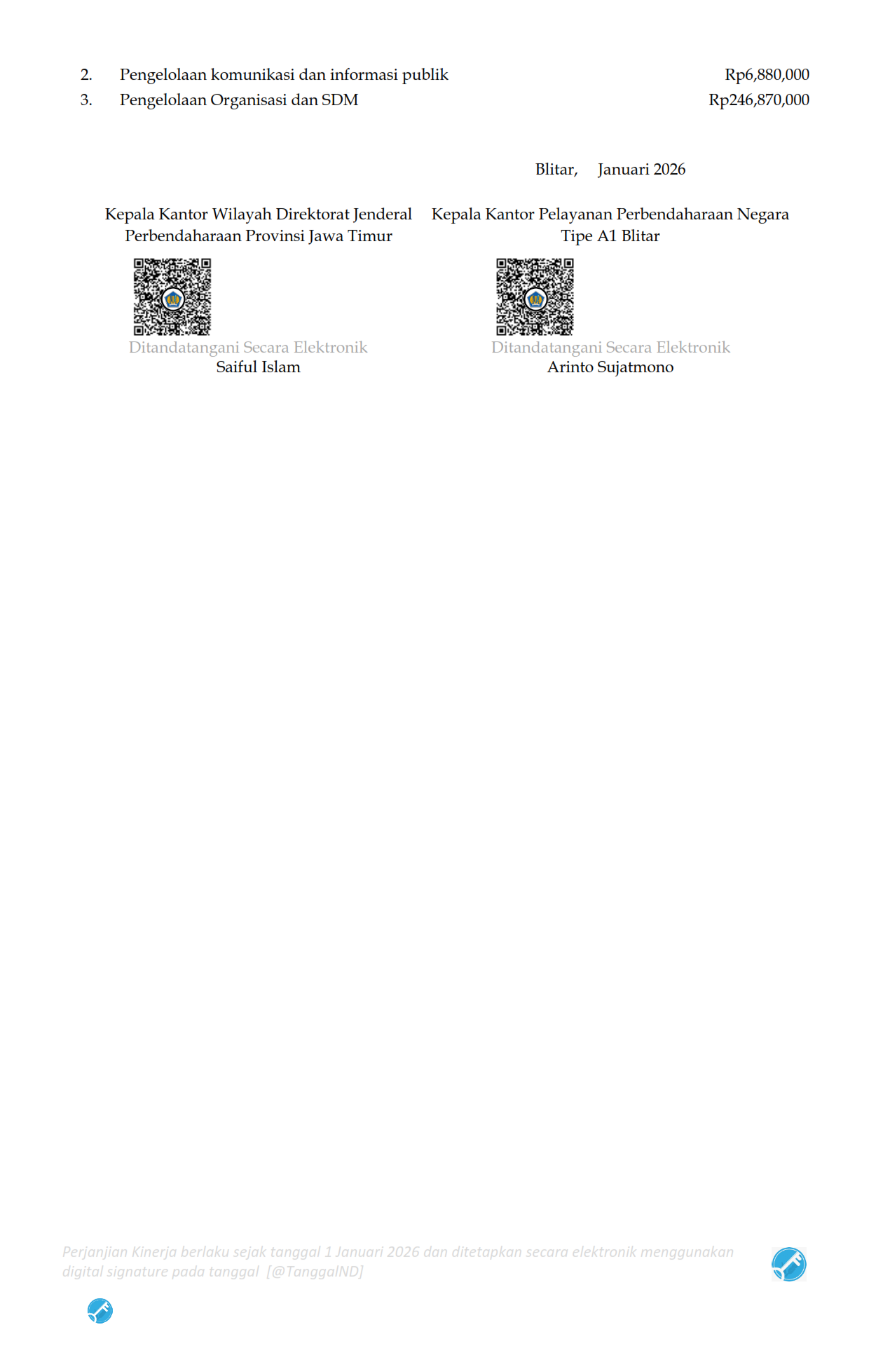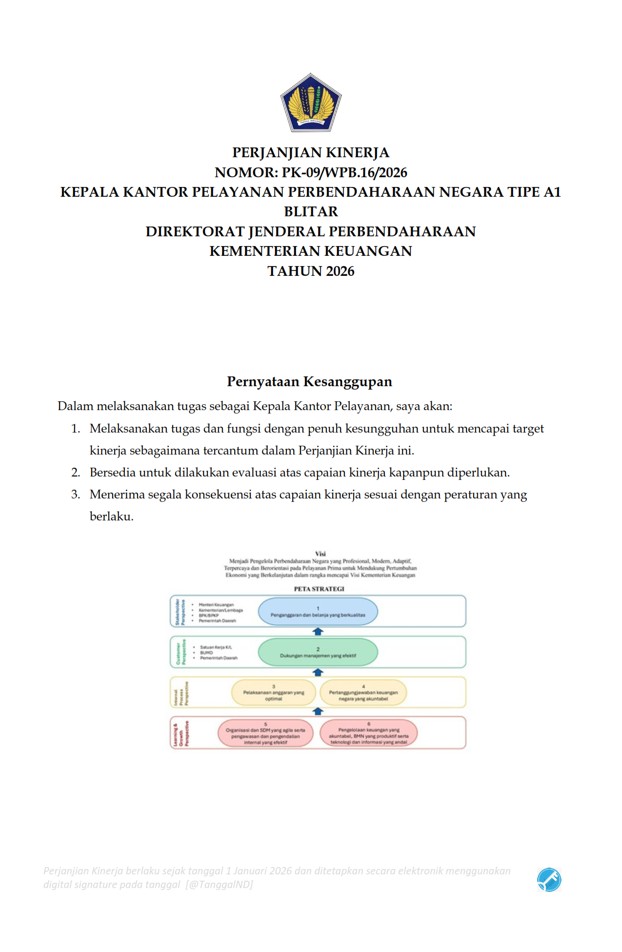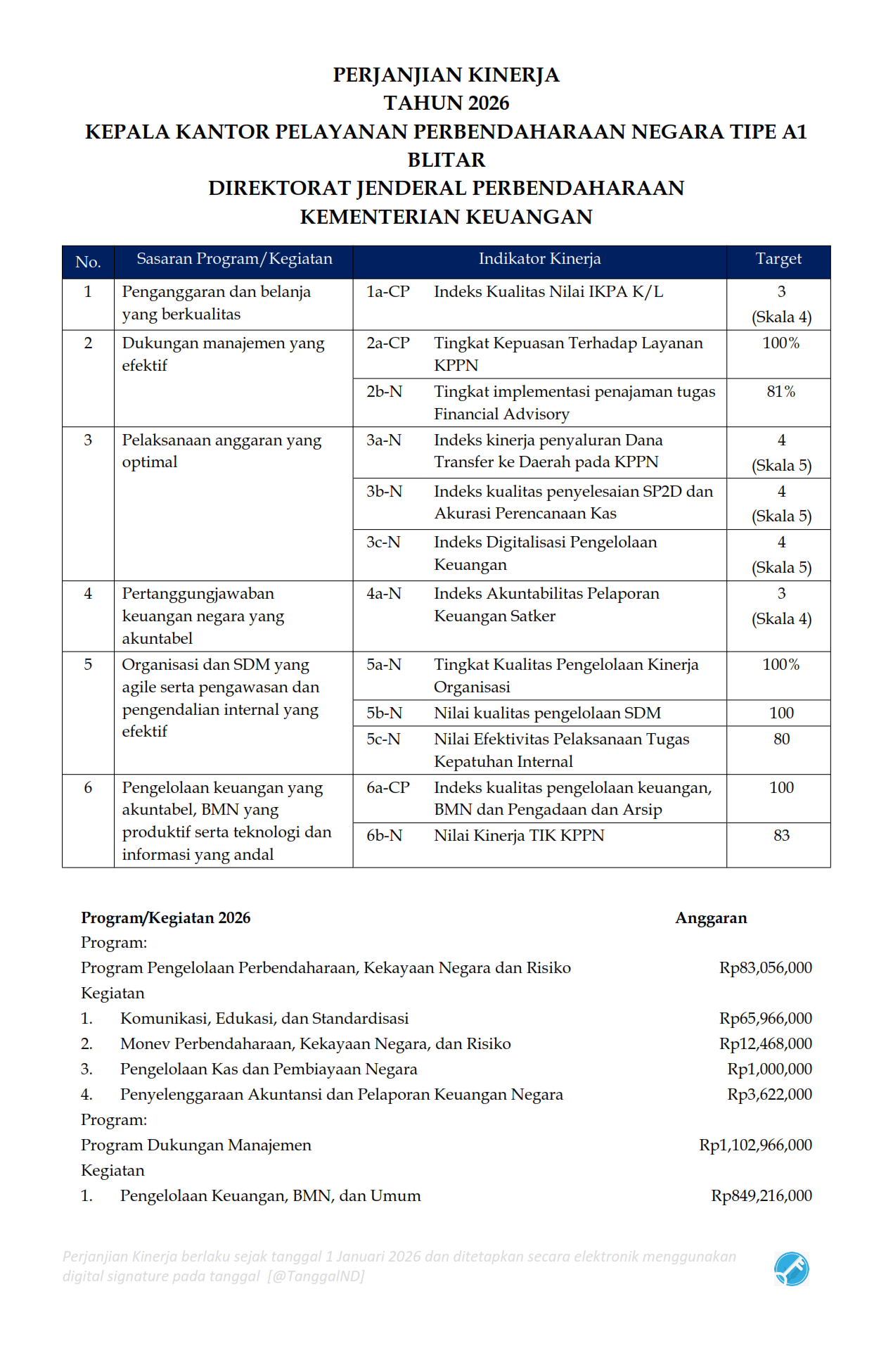 Perjanjian Kinerja dan Inisiatif Strategis Kepala KPPN Blitar Tahun 2026