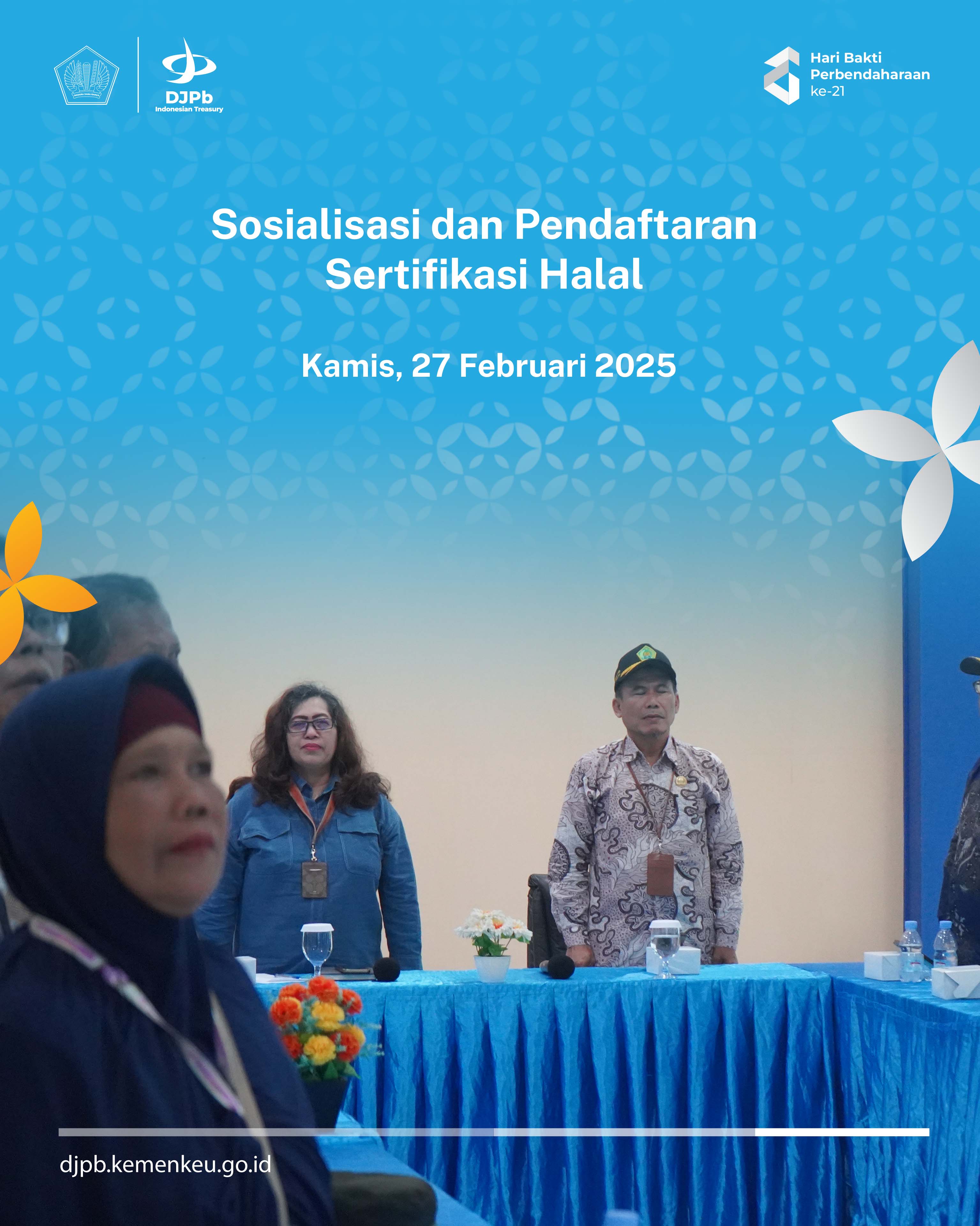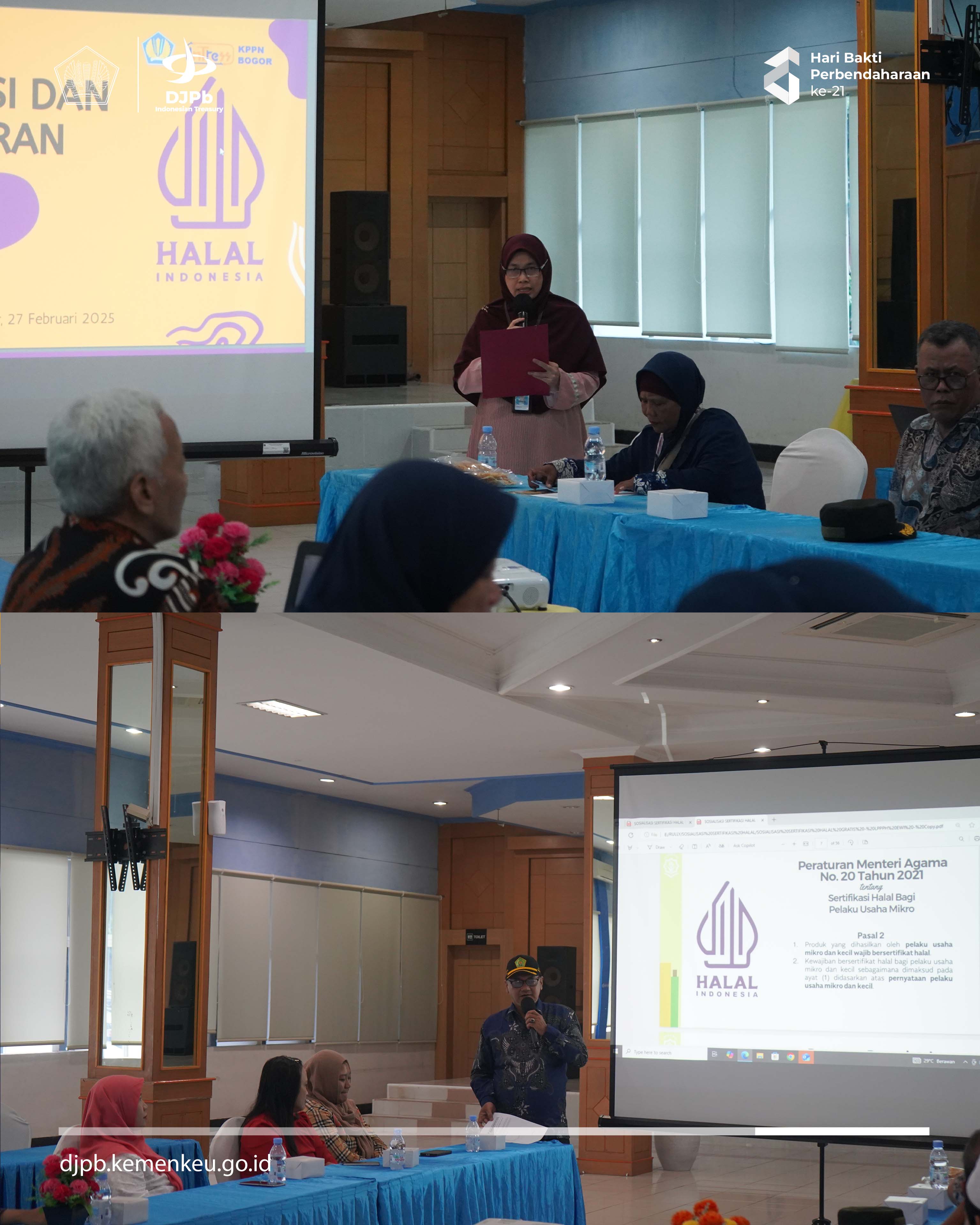 Pada Kamis, 27 Februari 2025, Kantor Pelayanan Perbendaharaan Negara (KPPN) Bogor melaksanakan kegiatan Sosialisasi dan Pendaftaran Sertifikasi Halal. Acara ini berlangsung di Aula Lantai I KPPN Bogor dan dihadiri oleh Kepala KPPN Bogor, pegawai KPPN Bogor, Kepala Kantor Kementerian Agama Kota Bogor, serta Direktur Lembaga Pemeriksa Halal-LPH Arsy Indonesia.
