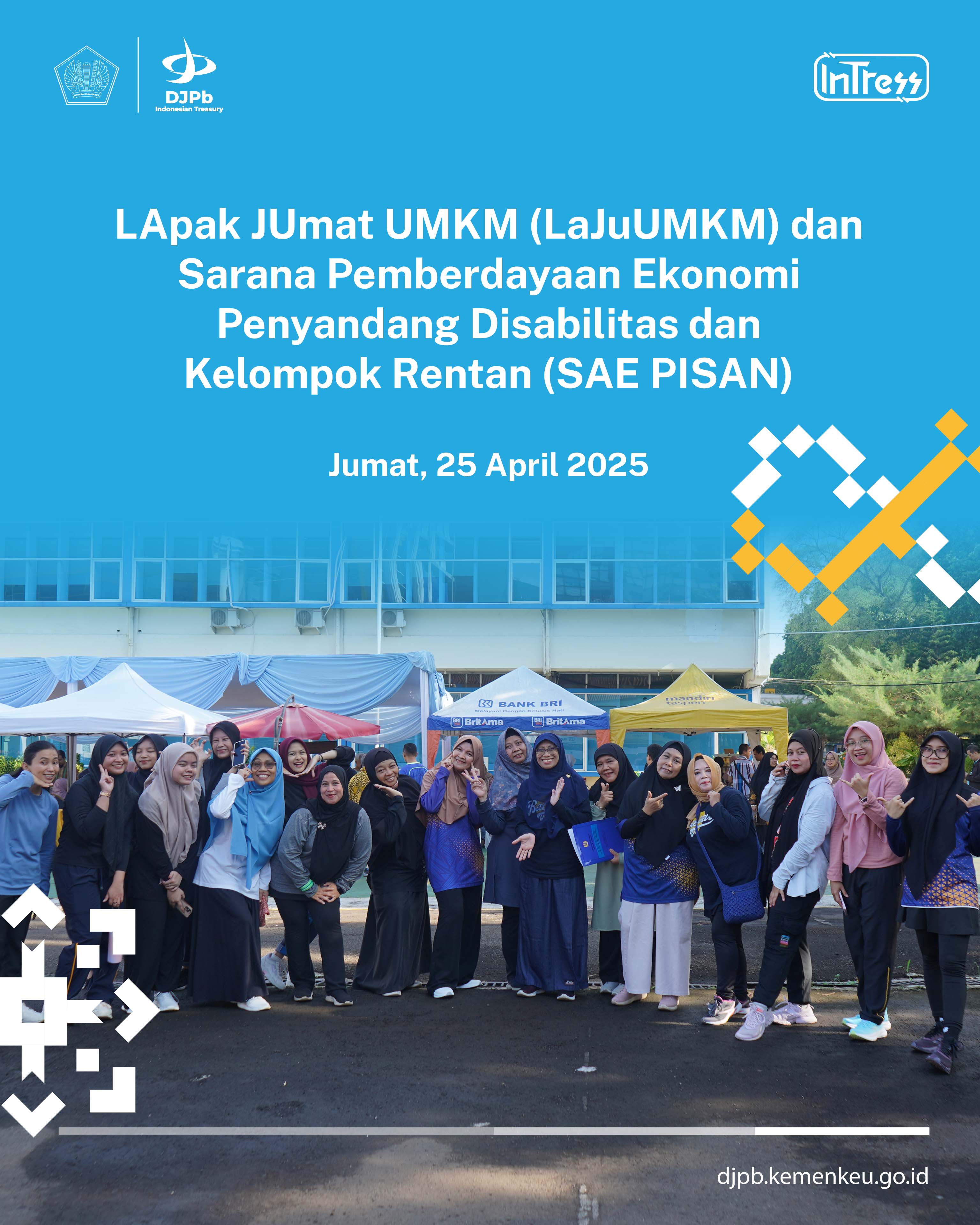Pada Jumat, 25 April 2025, KPPN Bogor menyelenggarakan kegiatan Lapak Jumat UMKM (LaJu UMKM) dan Sarana Pemberdayaan Ekonomi Penyandang Disabilitas dan Kelompok Rentan (SAE PISAN) di lapangan parkir KPPN Bogor . Kegiatan diawali dengan senam bersama kemudian dilanjutkan dengan bazar produk UMKM. Para pelaku UMKM, termasuk dari kelompok disabilitas, turut ambil bagian dalam kegiatan ini dengan menampilkan berbagai produk unggulan mereka. Kegiatan ini bertujuan untuk mendorong partisipasi aktif masyarakat dalam mendukung keberlangsungan UMKM, sekaligus sebagai bentuk pemberdayaan ekonomi bagi penyandang disabilitas dan kelompok rentan. Diharapkan, acara ini dapat menjadi wadah promosi dan penguatan ekonomi lokal secara berkelanjutan.