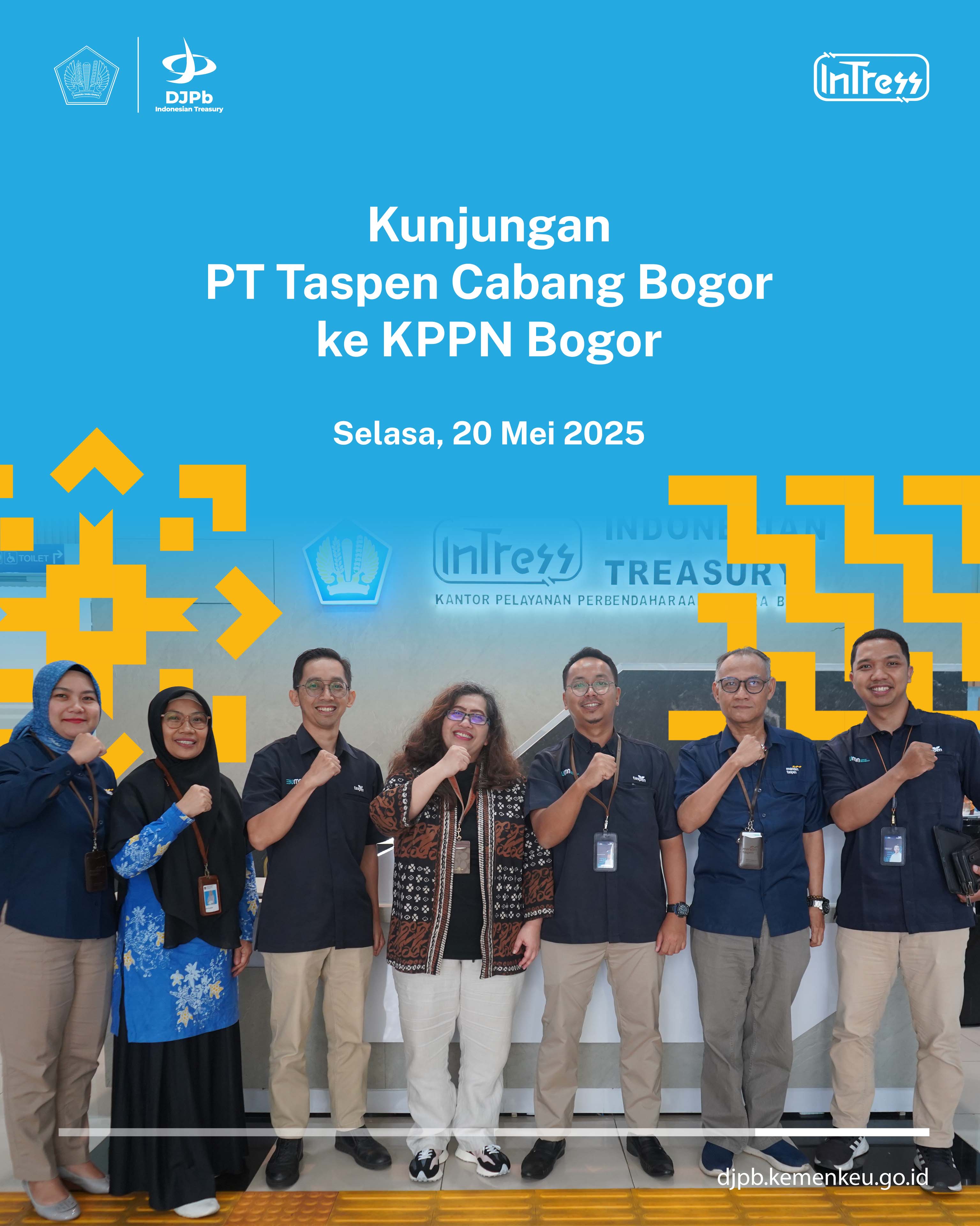 Pada Selasa, 20 Mei 2025, perwakilan PT Taspen Cabang Bogor melakukan kunjungan ke Kantor Pelayanan Perbendaharaan Negara (KPPN) Bogor. Kegiatan yang berlangsung di KPPN Bogor ini bertujuan untuk mempererat komunikasi dan meningkatkan sinergi antarinstansi. Dalam suasana penuh keakraban, kedua belah pihak membahas berbagai peluang kerja sama dan penguatan koordinasi pelayanan publik. Kunjungan ini menjadi langkah positif dalam membangun hubungan kelembagaan yang lebih harmonis dan produktif demi pelayanan yang lebih optimal kepada masyarakat.