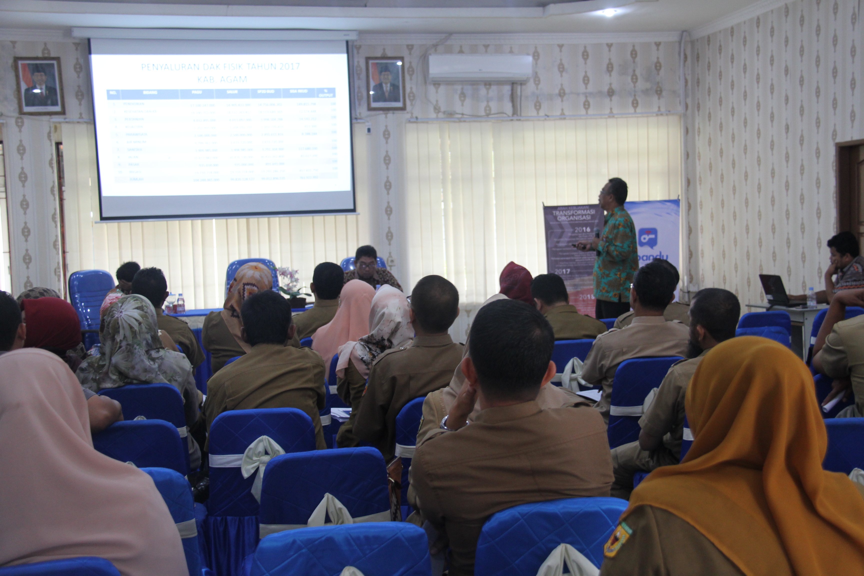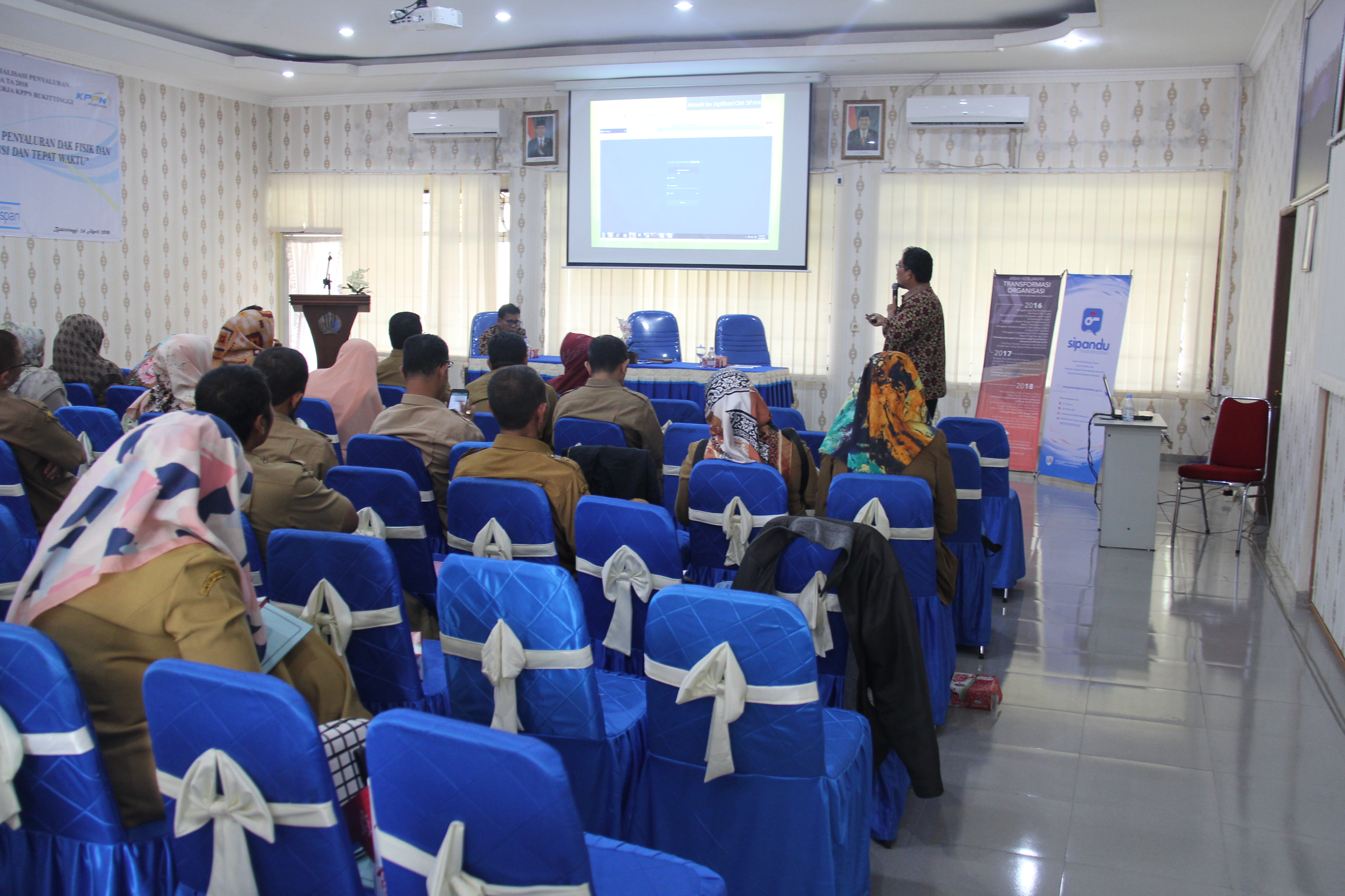 Rapat Koordinasi, Evaluasi, dan Sosialisasi Penyaluran DAK Fisik dan Dana Desa Tahun Anggara 2018 dilaksanakan di Aula KPPN Bukittinggi. Dalam kegiatan ini, narasumber yang akan menyampaikan materi antara lain Kepala KPPN Bukittinggi, Kepala Seksi MSKI KPPN Bukittinggi, dan AR KPP Pratama Bukittinggi. Materi yang disampaikan dalam kegiatan ini antara lain evaluasi penyaluran DAK Fisik dan Dana Desa 2018, tata cara penyaluran Dana Desa Tahun Anggaran 2018, penggunaan aplikasi OMSPAN dalam pertanggungjawaban penyaluran dana 2017 dan perencanaan penyaluran dana tahun anggaran 2018, serta perpajakan yang terkait dengan penyaluran DAK Fisik dan Dana Desa tahun anggaran 2018.