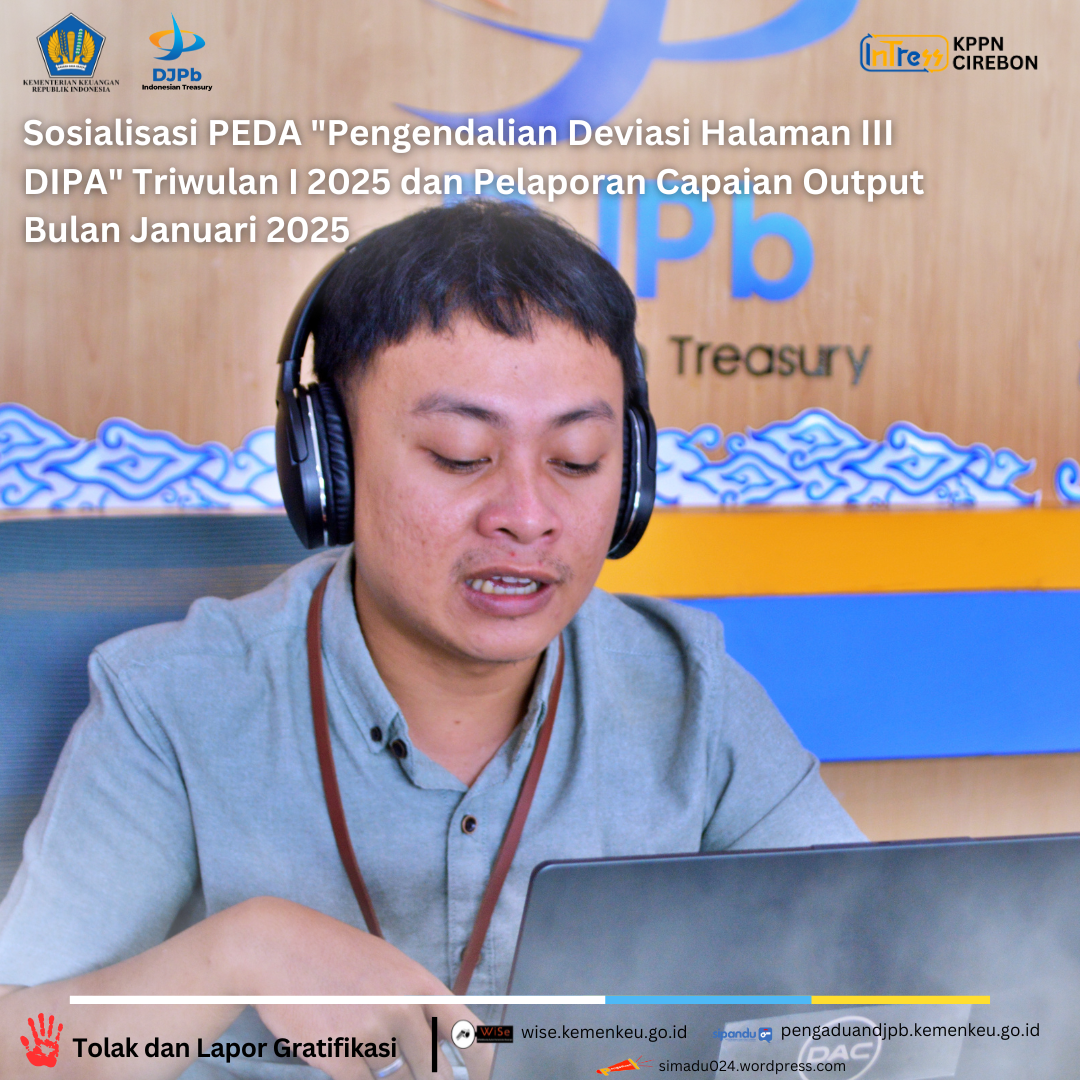 Selasa, 11 Februari 2025 KPPN Cirebon telah melaksanakan kegiatan Sosialisasi PEDA "Pengendalian Deviasi Halaman III DIPA" Triwulan I 2025 dan Pelaporan Capaian Output Bulan Januari 2025 secara daring melalui aplikasi ms.teams.